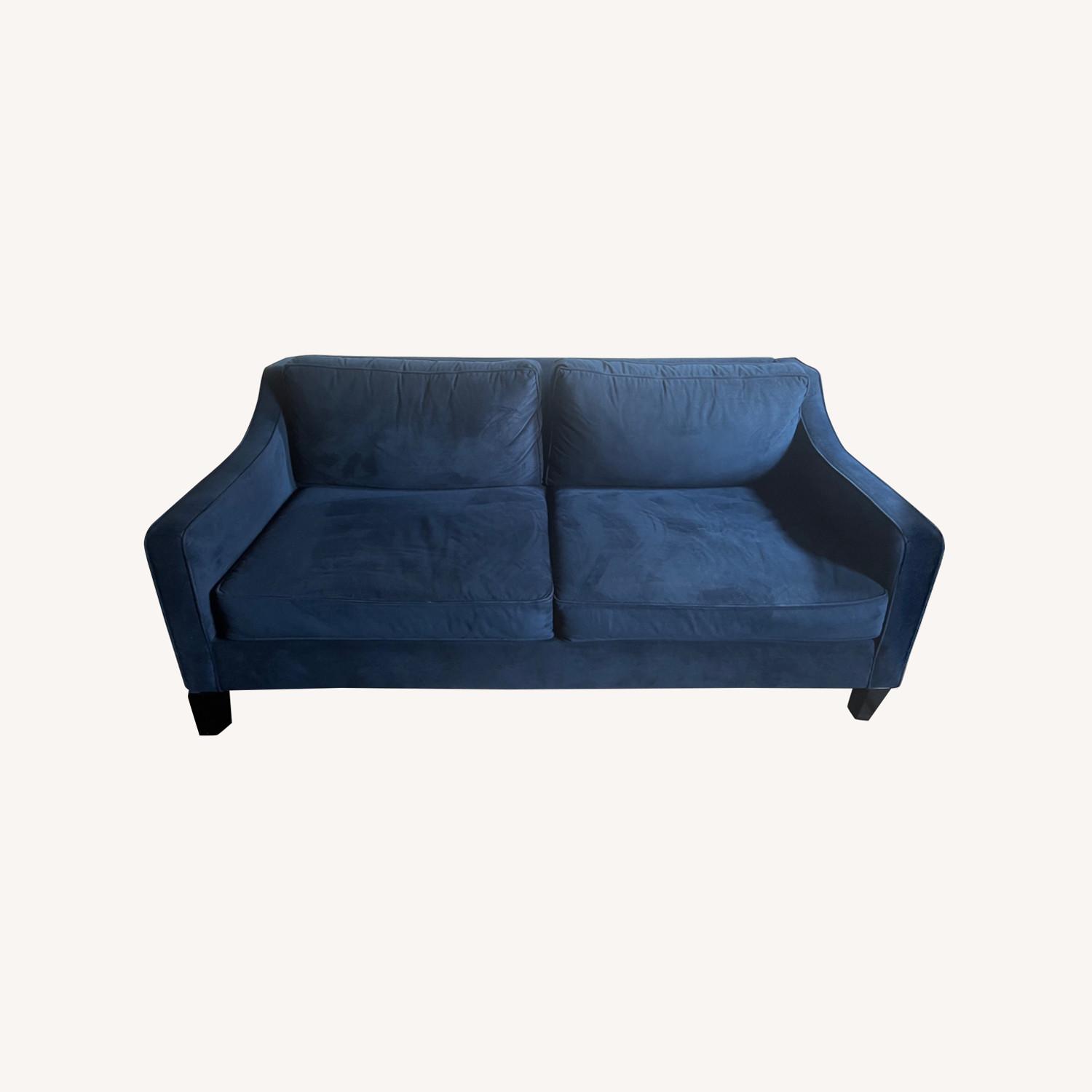 Seller's Notes:Just moved and buying a new sofa, this blue velvet west elm is in great condition. Must be sold by Friday 8/12