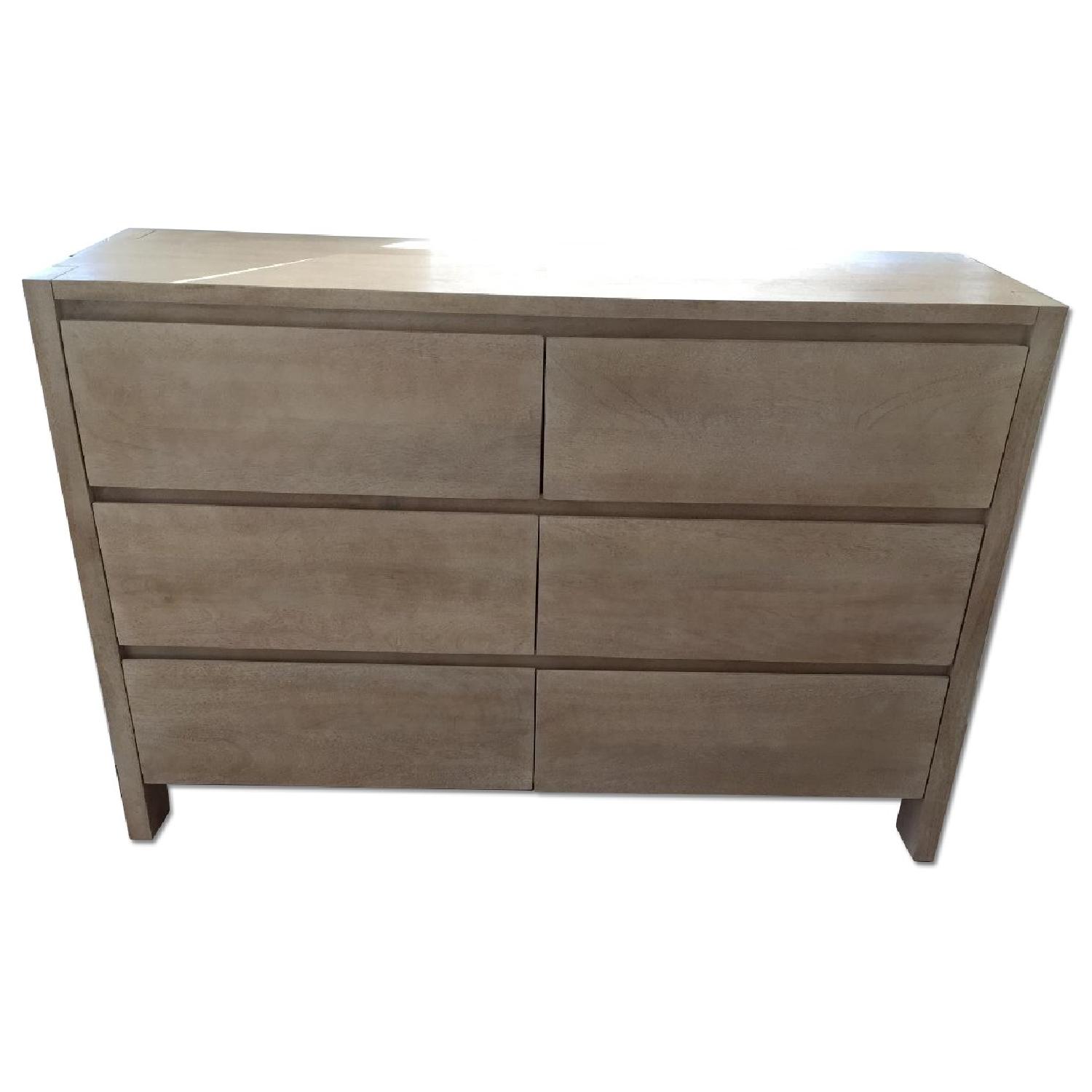 Seller's Notes:This is a west elm dresser with 6 Drawers. I have a dog in the house but he never had interacted with this furniture. the stains and discoloration are on the top surface but since it is a solid wood piece you can have a little project at home and get rid of it.
