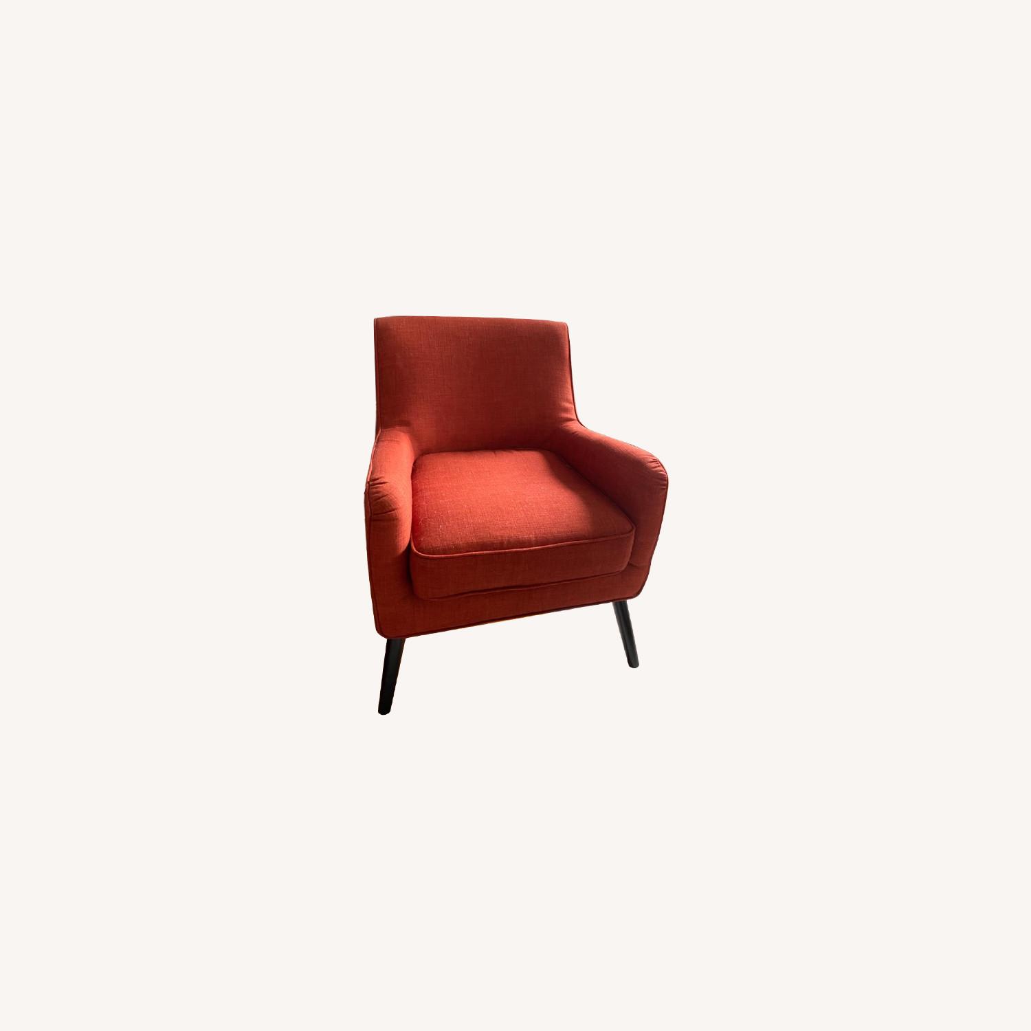 Seller's Notes:Gorgeous west elm armchair in a burnt red/orange hue. Material is boucle fabric. Barely used, no signs of wear and tear.