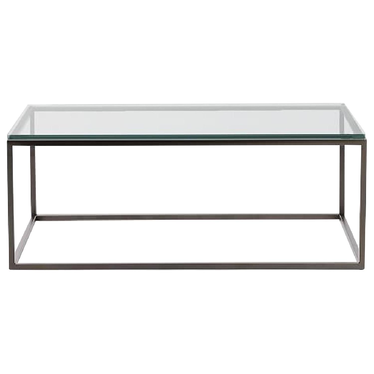 West Elm Box Frame Glass/Antique Bronze Coffee Table