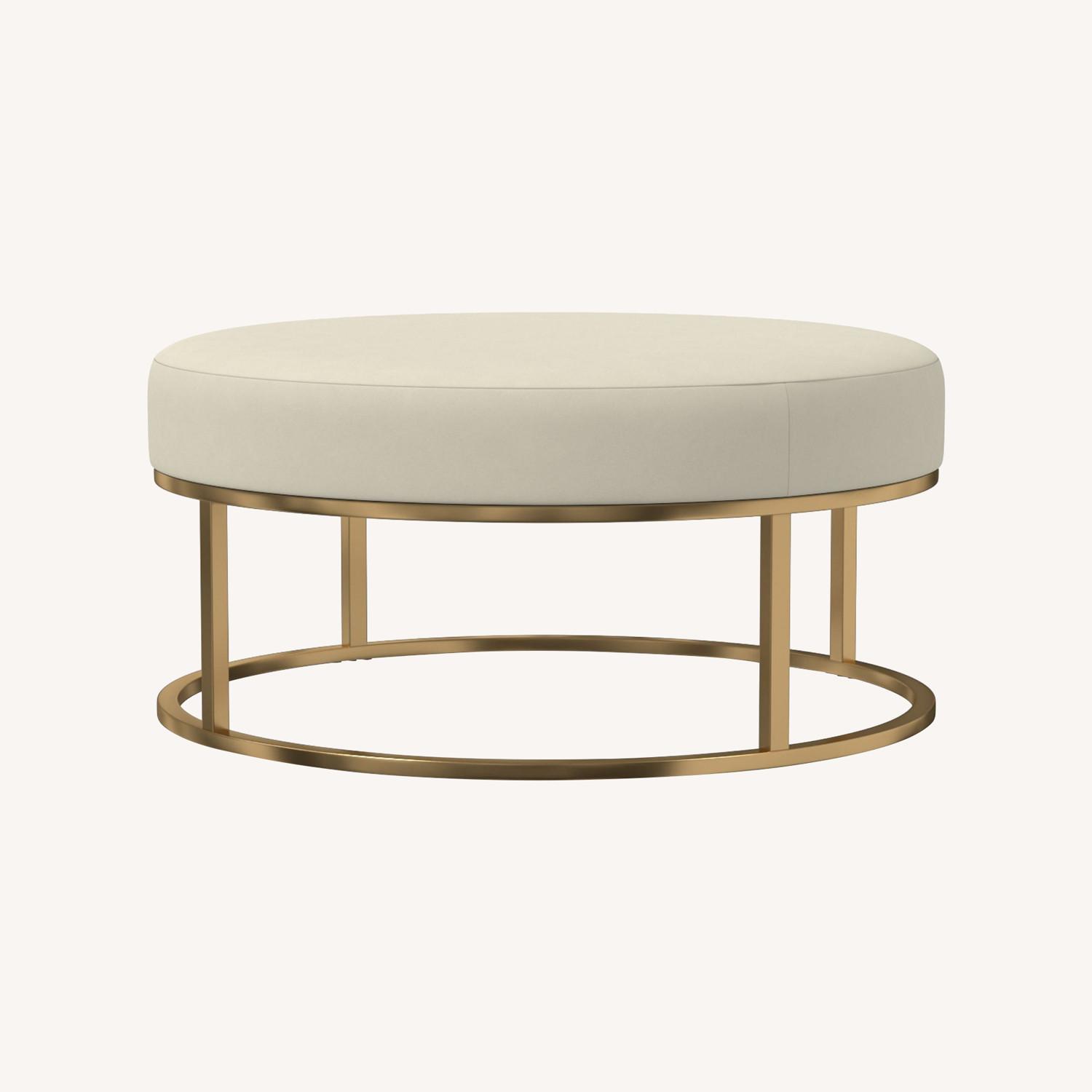 Seller's Notes:Snow, Sierra Leather Leather is a natural product. Variation in color and texture are inherent to each hide; no two pieces are exactly alike. Please note, vegan leather options do not have seams. Interior engineered wood frame. Semi-attached foam and polyester seat cushion. Metal base. Made in China.