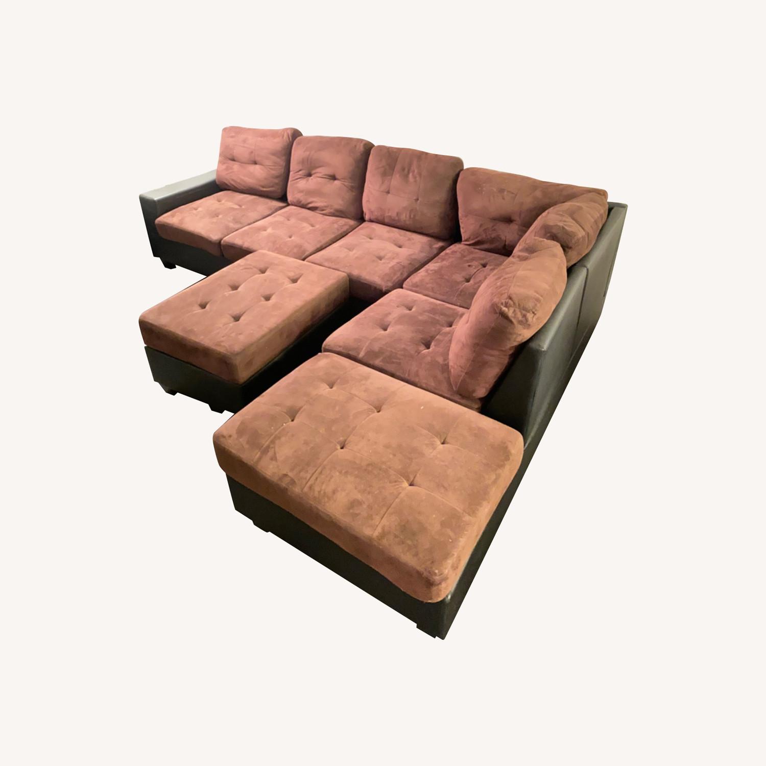 Seller's Notes:Brown L-sectional couch with ottoman Cup holders included Ottoman has storage inside No outside damages visible, minor inside damages 8.5/10 condition