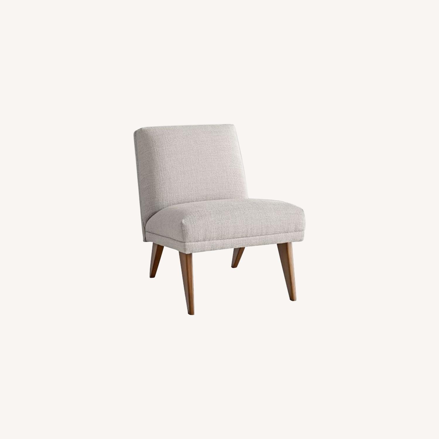 Seller's Notes:Our versatile Carson Slipper Chair pairs easy, go-anywhere style with effortless comfort, with a low, open profile and subtly pitched back that works in spaces big or small. KEY DETAILS 30.5"w x 23.5"d x 29.5"h. Solid wood legs in a Pecan finish. Solid + engineered wood frame. Chunky basketweave (80% polyester, 20% acrylic) upholstery in Stone. Imported.