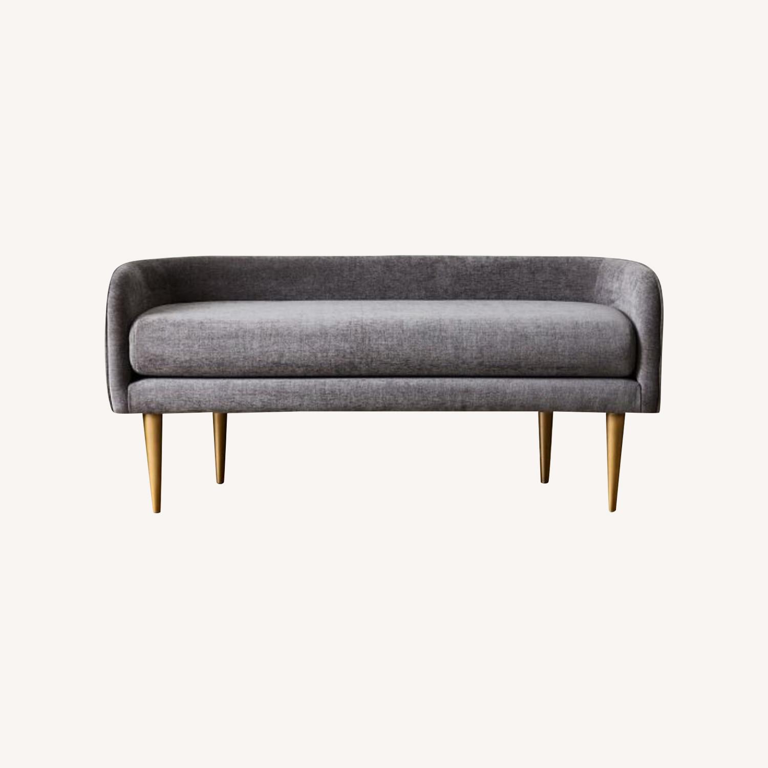 Seller's Notes:Why you'll love it: - Inspired by Italian mid-century design. - Balances elegant curves with a thick cushion. - Slim metal legs add a hint of glam. Fabric - Pewter Distressed Velvet Perfect balance - It balances elegant curves with a thick cushion and slender metal legs. Versatile seating - The low, tight back makes it ideal whether placed by the foot of your bed or next to a window.