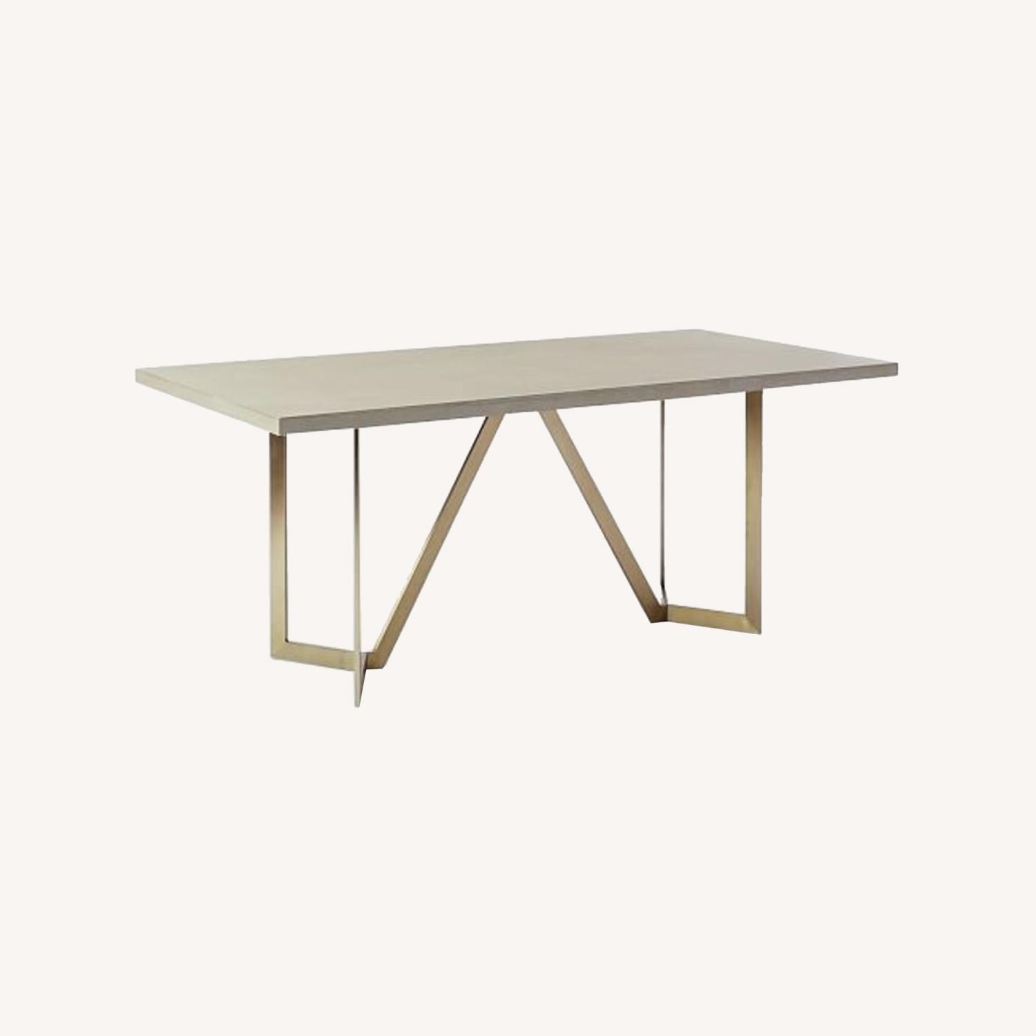 Seller's Notes:This table is a great addition to any space! Very contemporary and chic. Concrete top with antique brass legs. It does have some cracks and chips around the edges and the price reflects that. Need it to find a new home ASAP! Have been using it as a desk in our office and we've moved spaces so it no longer fits.