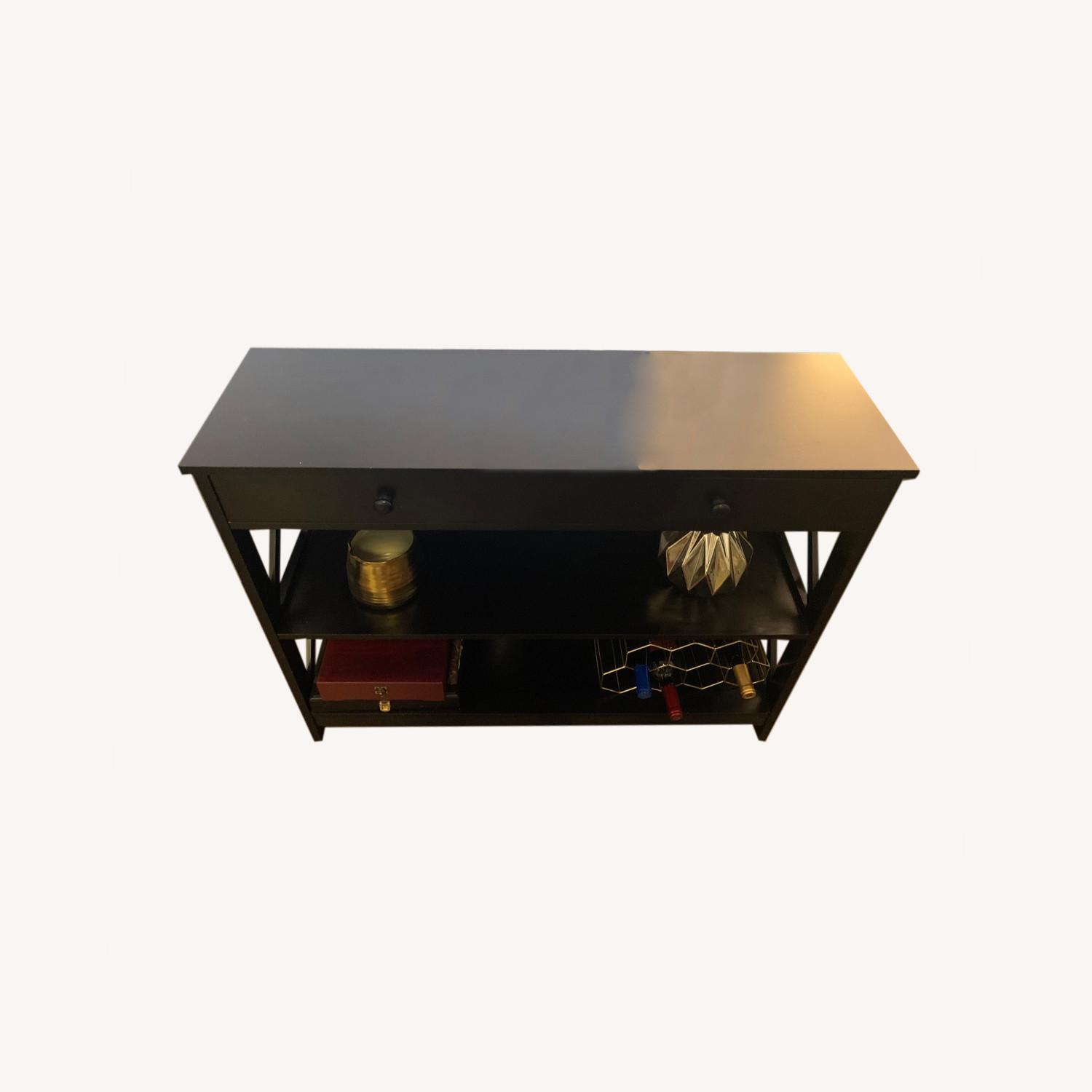 Seller's Notes:Oxford Console Table is great for any storage requirement. Two spacious shelves are ideal for holding books and curios, while the top is broad enough for a lamp and other decorative items. The single drawer gives you a place to store your devices, charging cables, small office supplies, and more, allowing you to keep them close by and out of sight. Its engineered wood construction is strong, durable, and made to last.