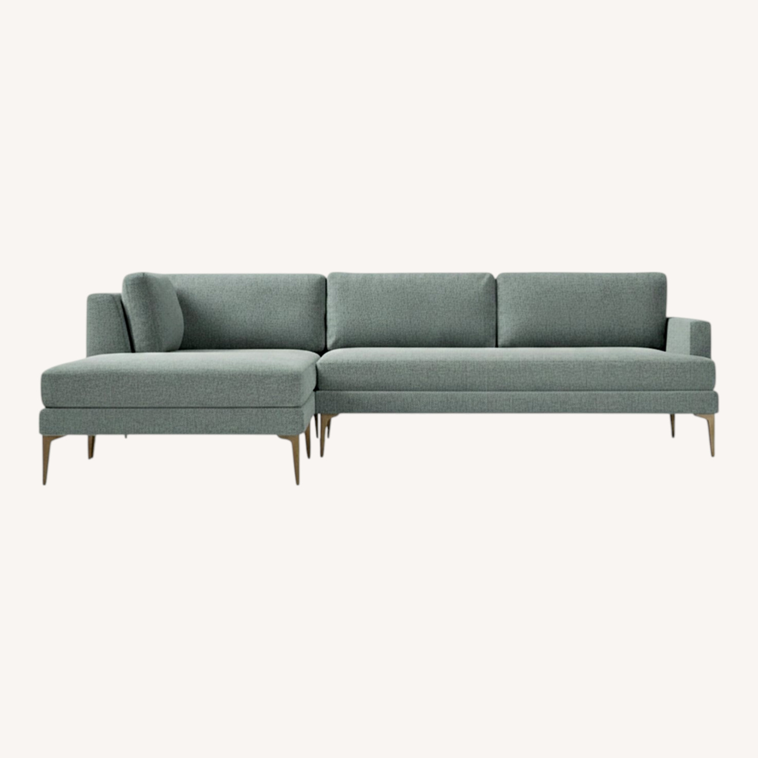 Seller's Notes:West Elm - Andes 105" Left Multi Seat 3-Piece Ottoman Sectional, Standard Depth, Distressed Velvet - Mineral Gray, Brass Legs