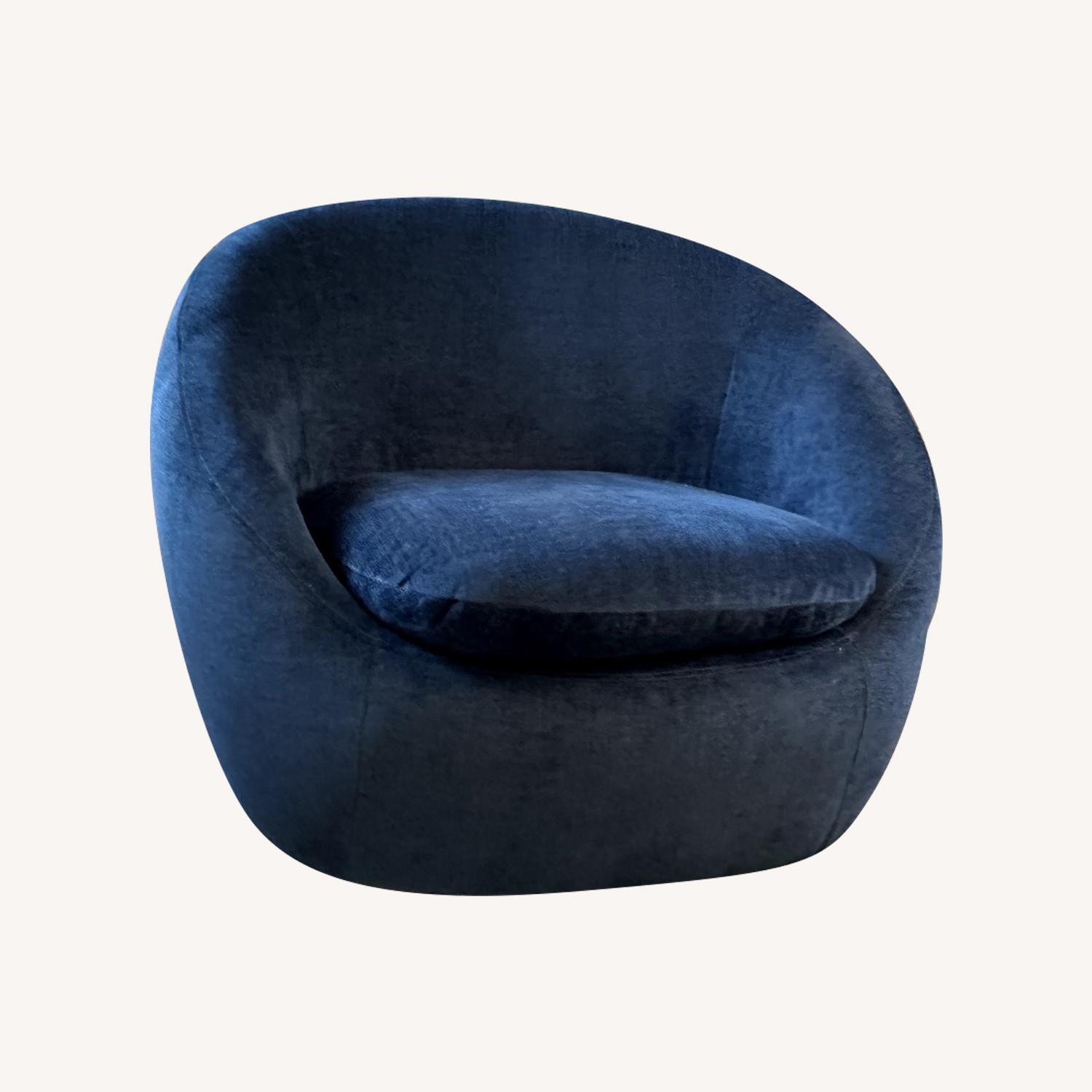 Seller's Notes:West Elm Cozy Swivel Chair in ink blue distressed velvet. Less than two years old. Excellent Condition. Selling because of pending move.