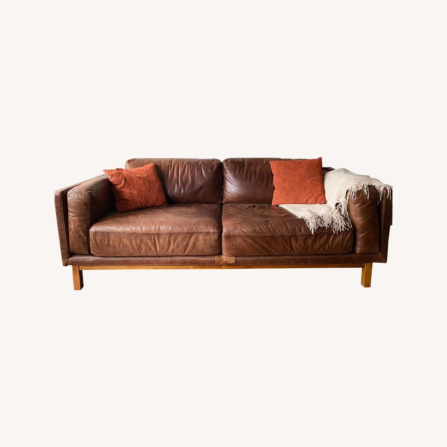 Seller's Notes:Lovely west elm leather sofa that has seen 2 years of use. No major blemishes — still very taut. Hate to get rid of it but need a sleeper!