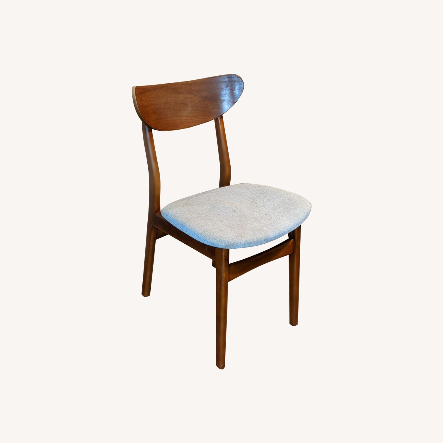 Seller's Notes:Mid-century inspired West Elm dining chairs (2) items. Walnut finish. Paired with West Elm round table (Also listed on Aptdeco). Timeless beauty. Great for small spaces. Use as dining table or working space.