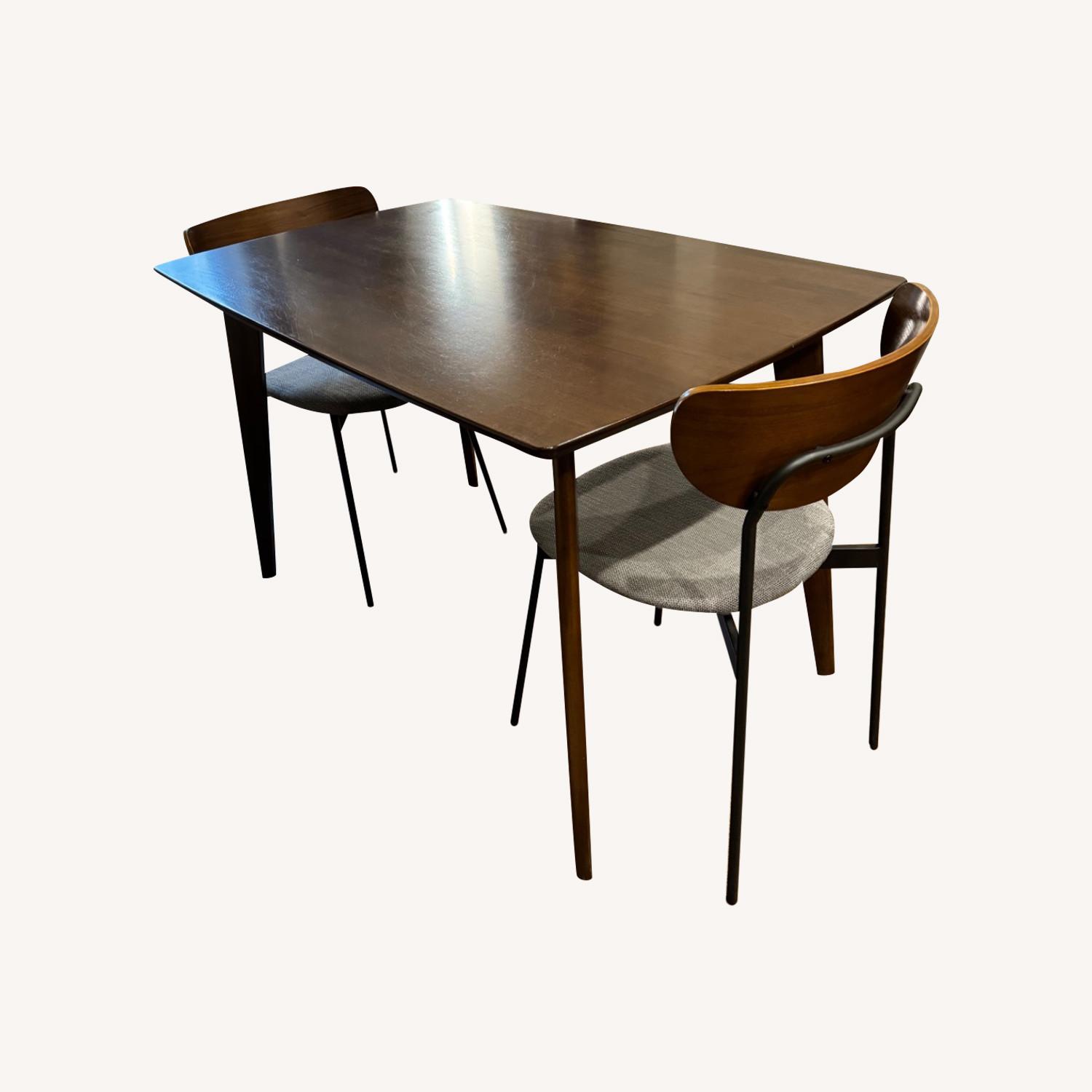Seller's Notes:Mid century style rectangle dining room table. Good condition, some light scuffs seen in photos. Mid century dining chairs (2). Great condition, no damage. Table is: 29 width 47 length 31 height