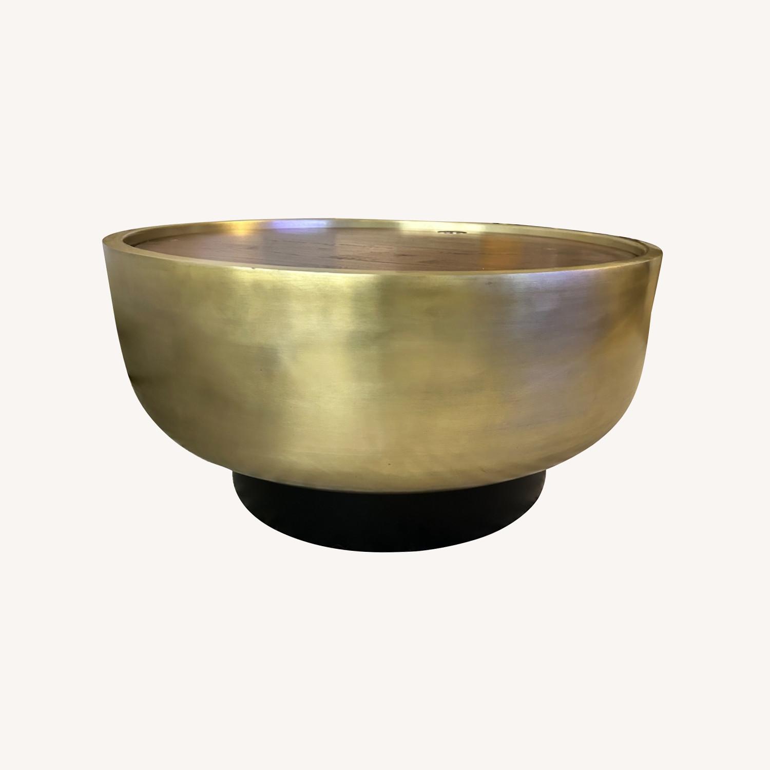 Seller's Notes:Walnut top, antique brass drum. Light 1”blemish on top but otherwise barely used. Great with a sofa and for storage.
