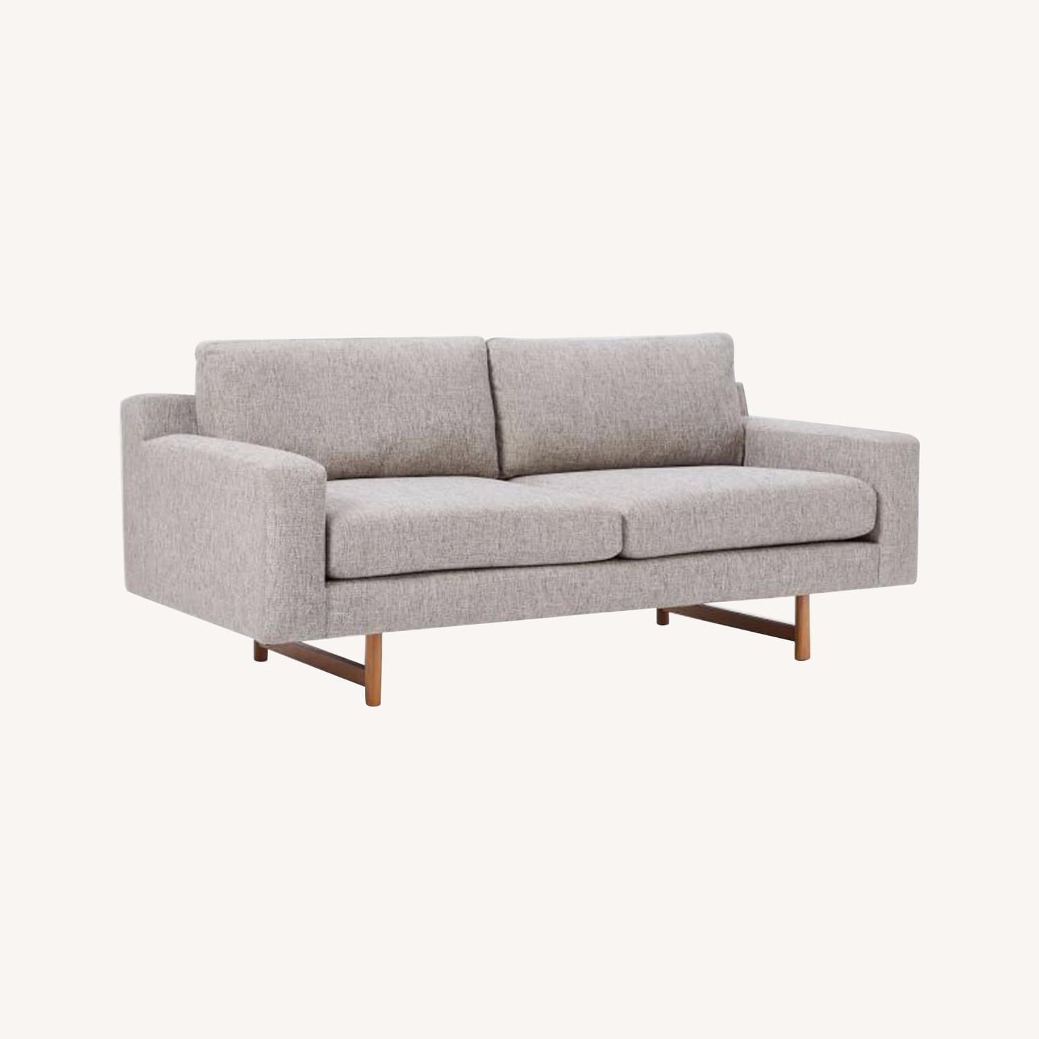Seller's Notes:Selling my 74" West Elm Eddy Sofa in Pearl Gray, Deco Weave. I love this couch and have had a few good years with it, but I am moving and sadly cannot bring it to my new home. This couch is extremely versatile and matches well with many different interior design styles. The only wear and tear it has is one stain (picture included) on the pillow which I have not yet tried to get out, but I would imagine it washes out quite easily. The pillow can be easily reversed to hide the stain, but I included a photo in full transparency. This couch easily has a few good years left, and I hope it goes to a new home that will appreciate it as much as I have!