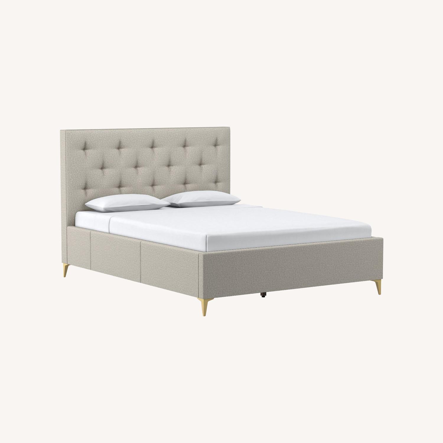 Seller's Notes:Frost Gray Choose your leg option: No-Show or Metal (Light Bronze or Dark Pewter). Choose your headboard height: Standard (46") or Tall (58"). Choose the tufted detailing for the headboard: Grid or Diamond. Thickly padded and tightly upholstered on all sides (excluding back of headboard) in your choice of fabric. Back of headboard is 100% polyester. Solid pine and engineered wood frame with reinforced joinery. Sizable pull-out storage drawers (2 on each side). Storage drawers feature side mounted ball-bearing metal drawer slides, making them easy to open and close. Built-in levelers on legs provide stability on uneven surfaces. Accommodates most standard mattresses; box spring optional. Made in Mexico.