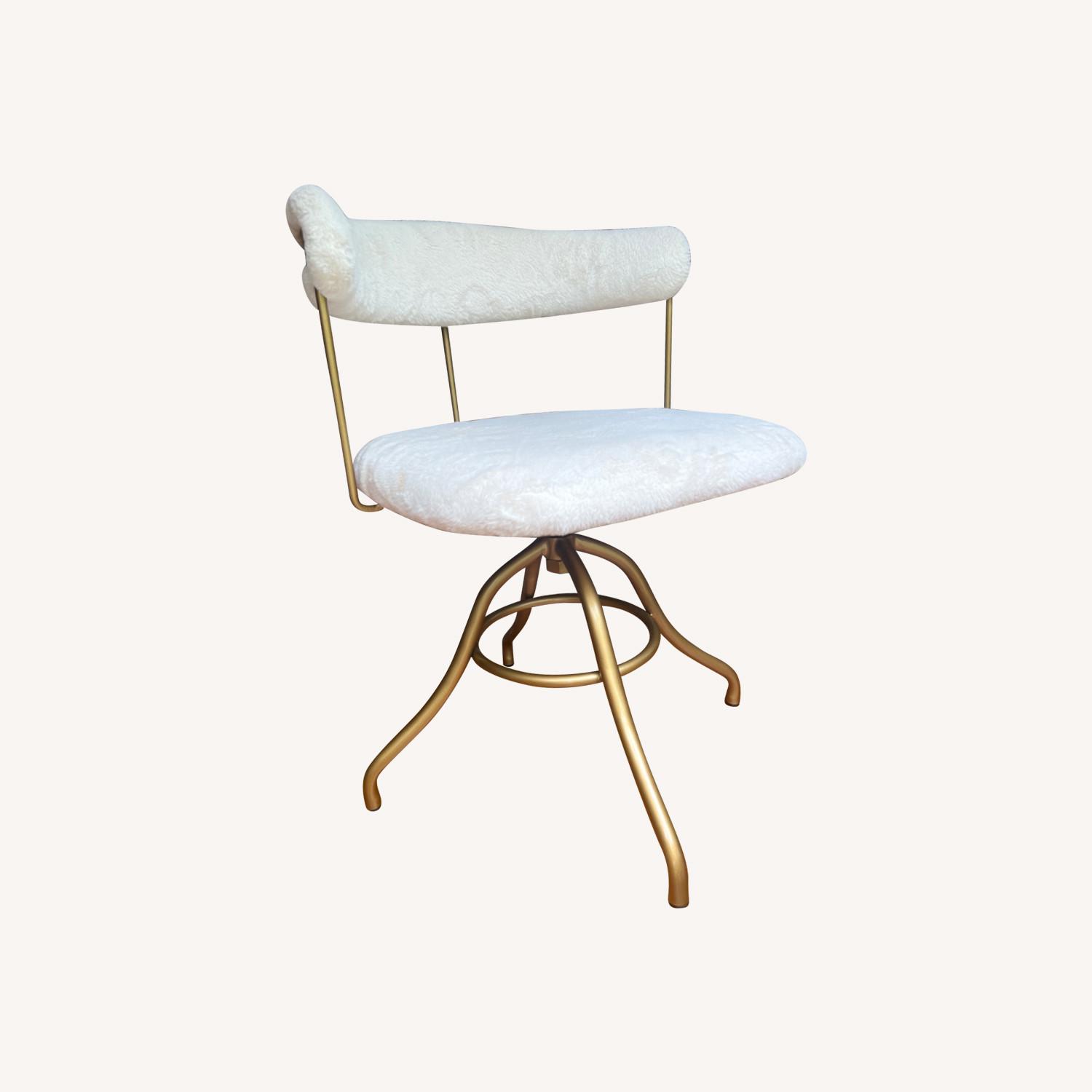 Seller's Notes:This chair is perfect for apartments as it is small and compact. The metal is a antique gold color and does not look cheap. The chair swivel and the height can be adjusted. Very easy to clean and comfortable for long sitting. Use it in your bedroom at a vanity or as a desk chair!