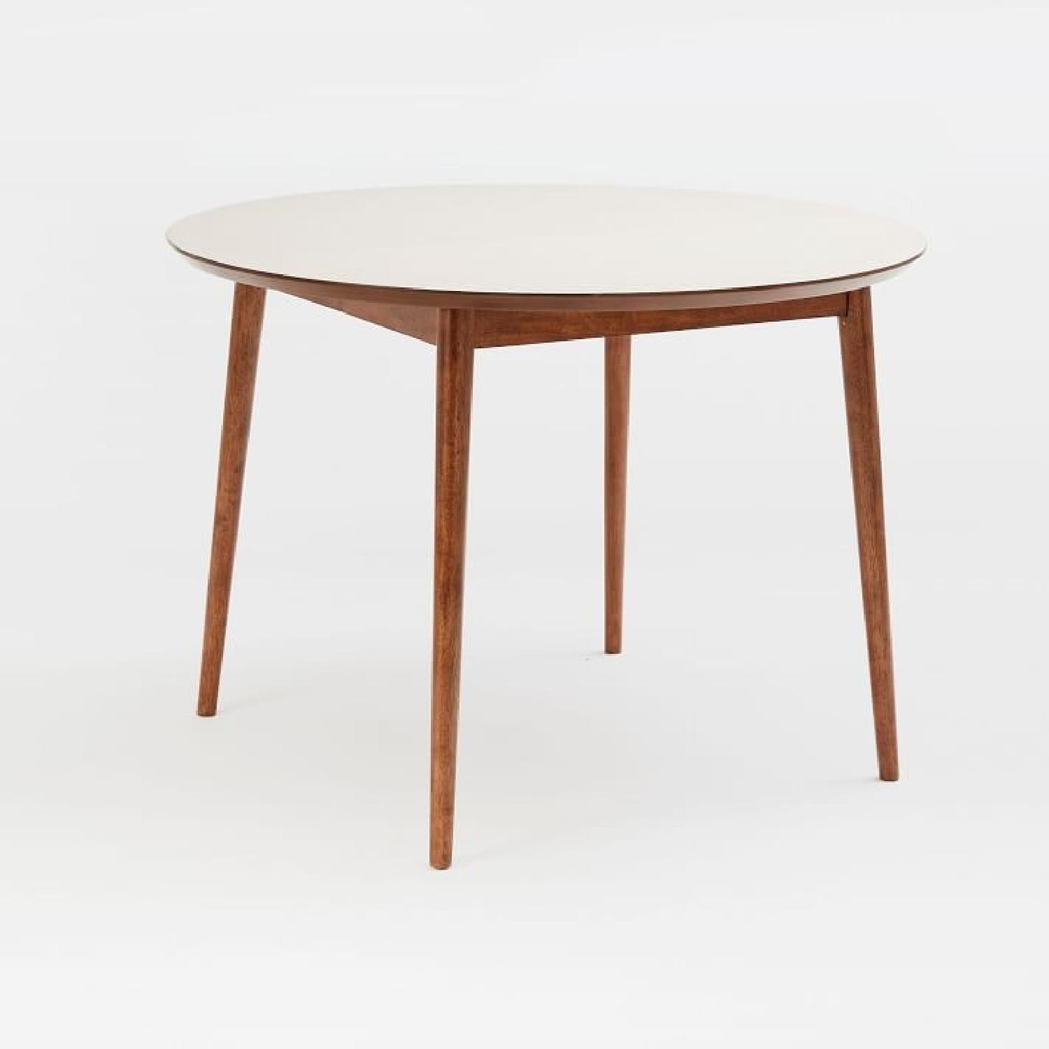 Seller's Notes:Beautiful West Elm dining table designed by Fishs Eddy. It has a leaf that will make it expand to 60in, making it the perfect table for every day use that's also ready to host guests and entertain. It has a laminate table top that's super easy to wipe down and doesn't stain. I've had this table only for about 3 months, so it's in near-perfect condition. Selling because I'm moving abroad.