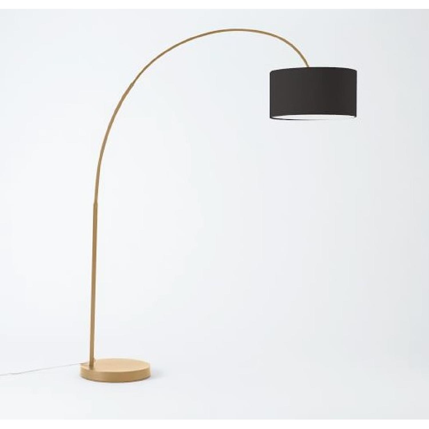 Seller's Notes:- Gorgeous overhead floor lamp from West Elm. Brushed antique gold base with a charcoal lampshade - Lamp is less than a year old, recently moved and it no longer works for my apt layout or else I wouldn't be selling it! I love the way this lamp looks over a couch. - There is very little wear and tear if any at all. I can't notice anything. The color is a very nice brushed antique metal, if there's any scratches it conceals it well. This lamp looks brand new. http://www.westelm.com/products/overarching-floor-lamp-w1296/?pkey=e%7Cfloor%2Blamp%7C34%7Cbest%7C0%7Cviewall%7C24%7C%7C13&cm_src=PRODUCTSEARCH
