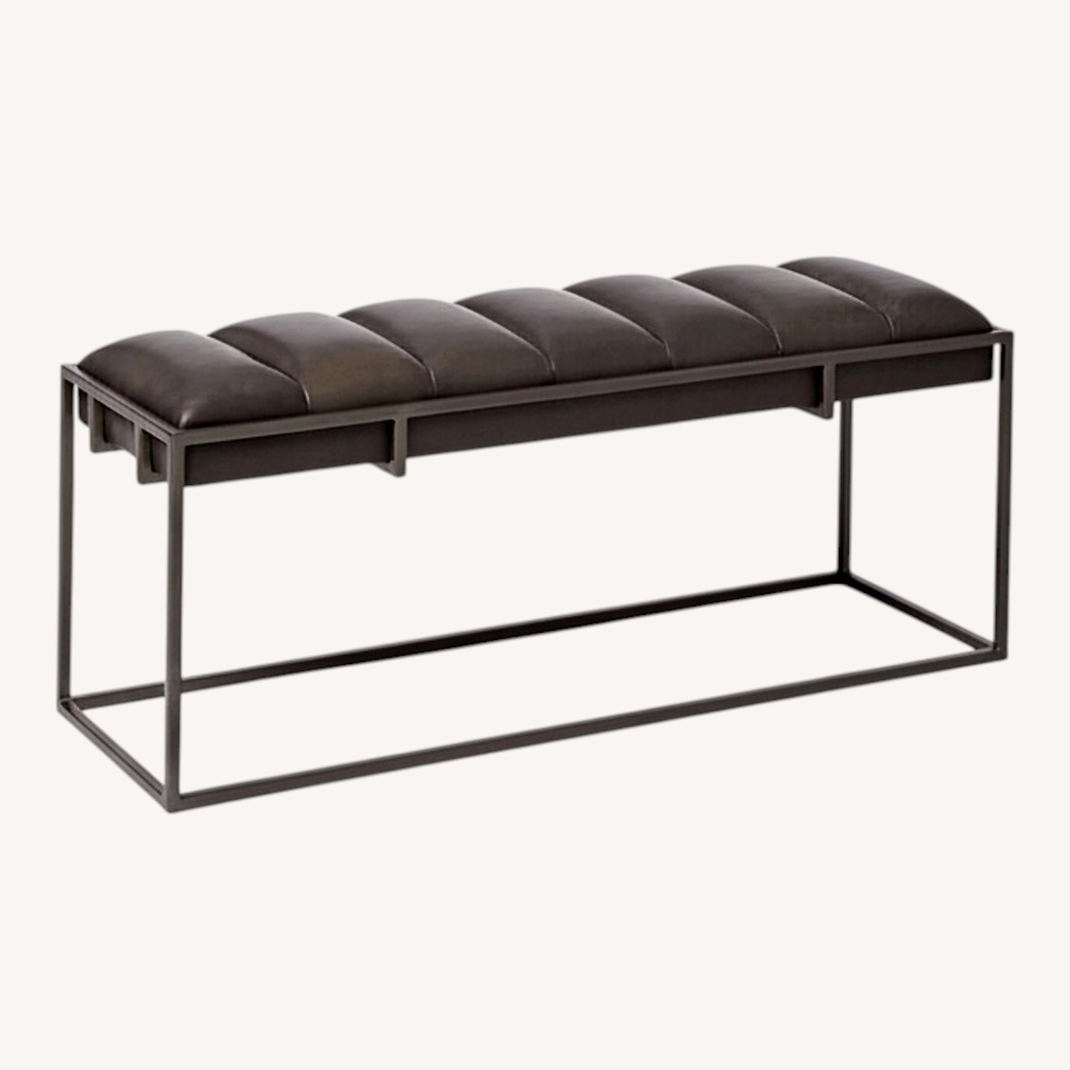 The Fontanne Bench's hand-welded iron frame cradles its hand-upholstered leather seat, complete with plush channel pleating. Displayed in an entryway or at the foot of a bed, it adds elegant proportion to your space. It's part of west elm Collection—a line that blends the best of west elm with luxe materials, refined finishes and impeccable details.