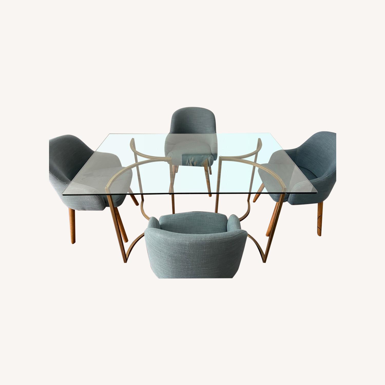 Seller's Notes:West Elm Glass Dining Table w/ Bronze Base Great condition/ sturdy base. Seats 4 to 6. 36 " x 60”