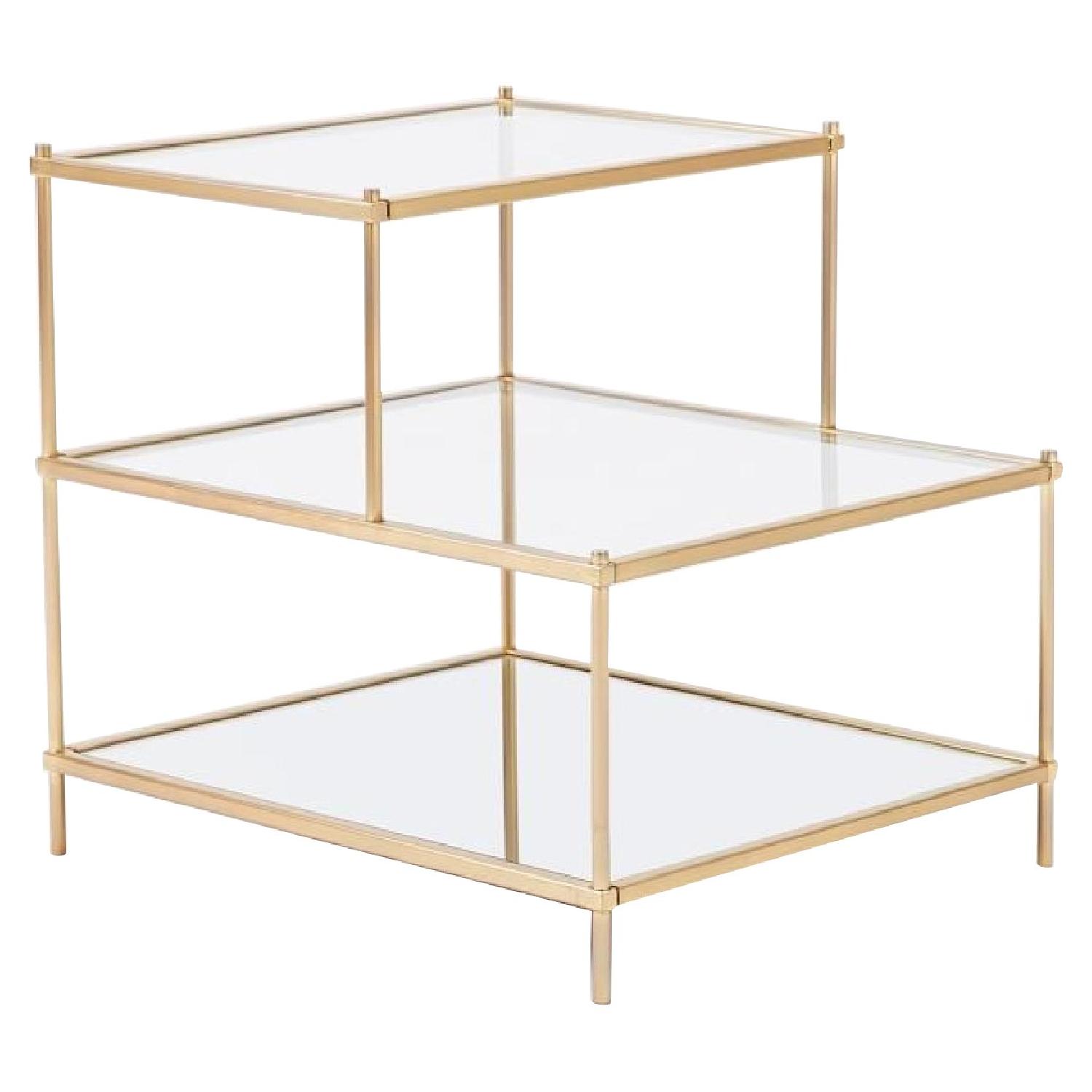 Seller's Notes:Pottery barn or crate and barrel can’t remember. Two glass shelves bottom level mirrored. No scratches on glass. Beautiful tables, selling because I am redecorating.