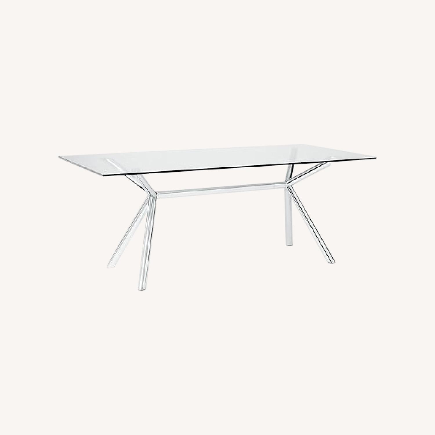 Seller's Notes:Apartment sized glass trestle table from West Elm. Metal legs and glass top. The glass is tempered glass, so it is really sturdy. It is really good value for money. No scratches, no chips, no stains. We have used it as a large desk and also as a dinner table - it can comfortably seat four people.