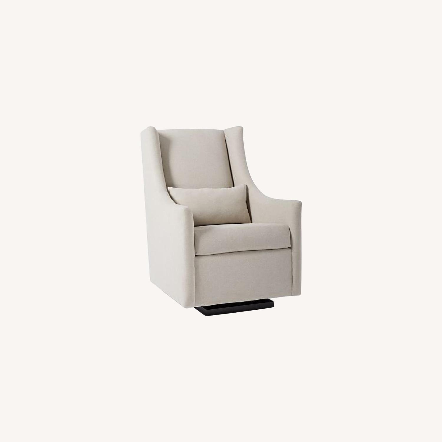 Seller's Notes:West Elm Graham Glider in Dove Gray Performance Velvet. Used with both of our kids and now turning the nursery into a “big kids room”. Treated with Scotch Guard when purchased, so it’s held up amazingly well.