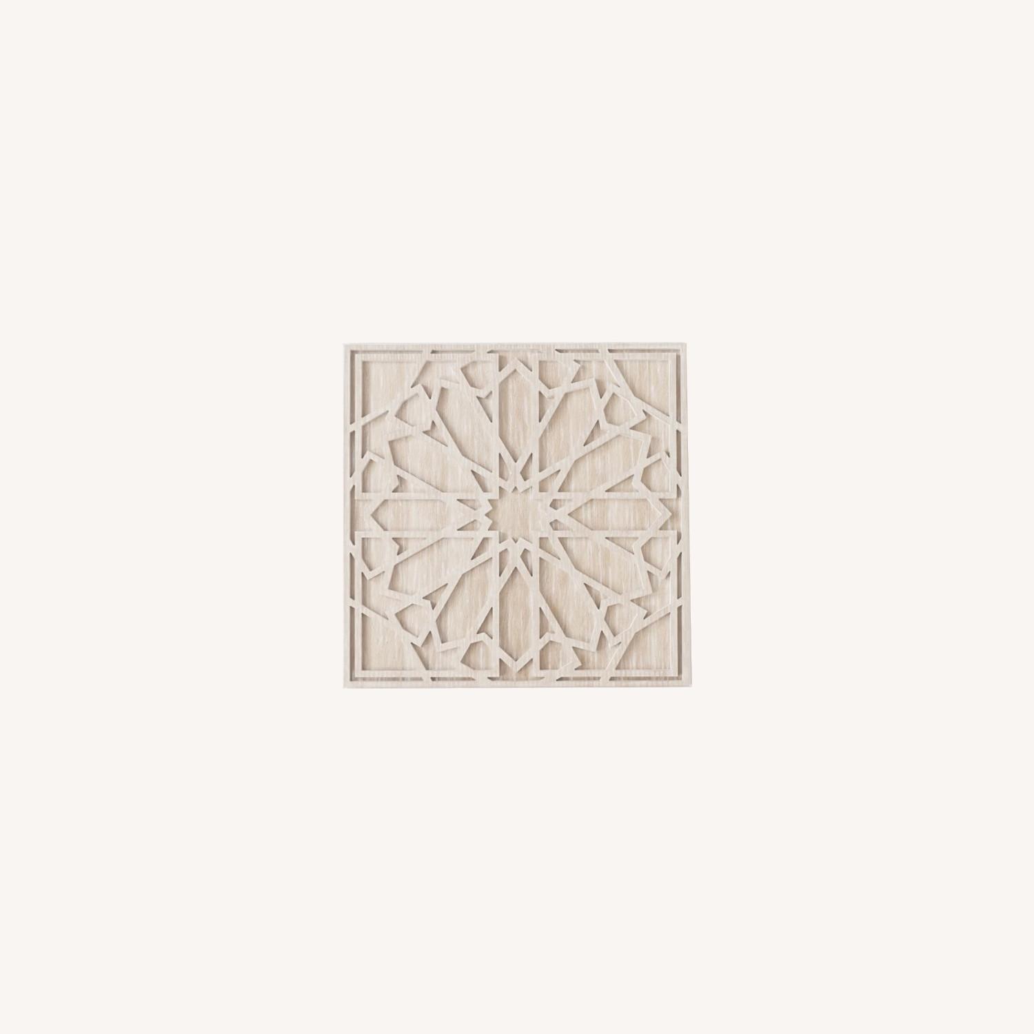 Seller's Notes:Think big. Inspired by geometric stone carvings, this grand Graphic Wood Wall Art adds pattern and texture to spaces in need of some drama. 47.5"sq. x 1"d. Engineered whitewashed wood. Hanging hardware included. Imported.