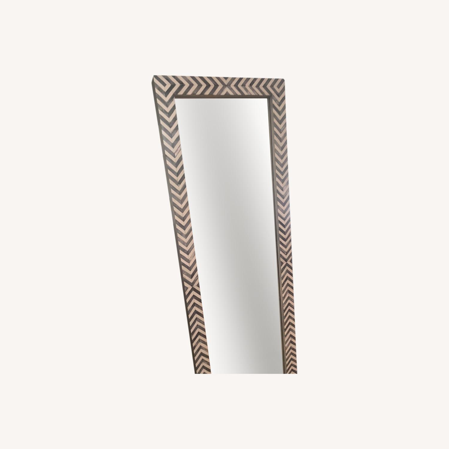 Seller's Notes:Beautiful chevron floor mirror with herringbone gray and white bone detail.