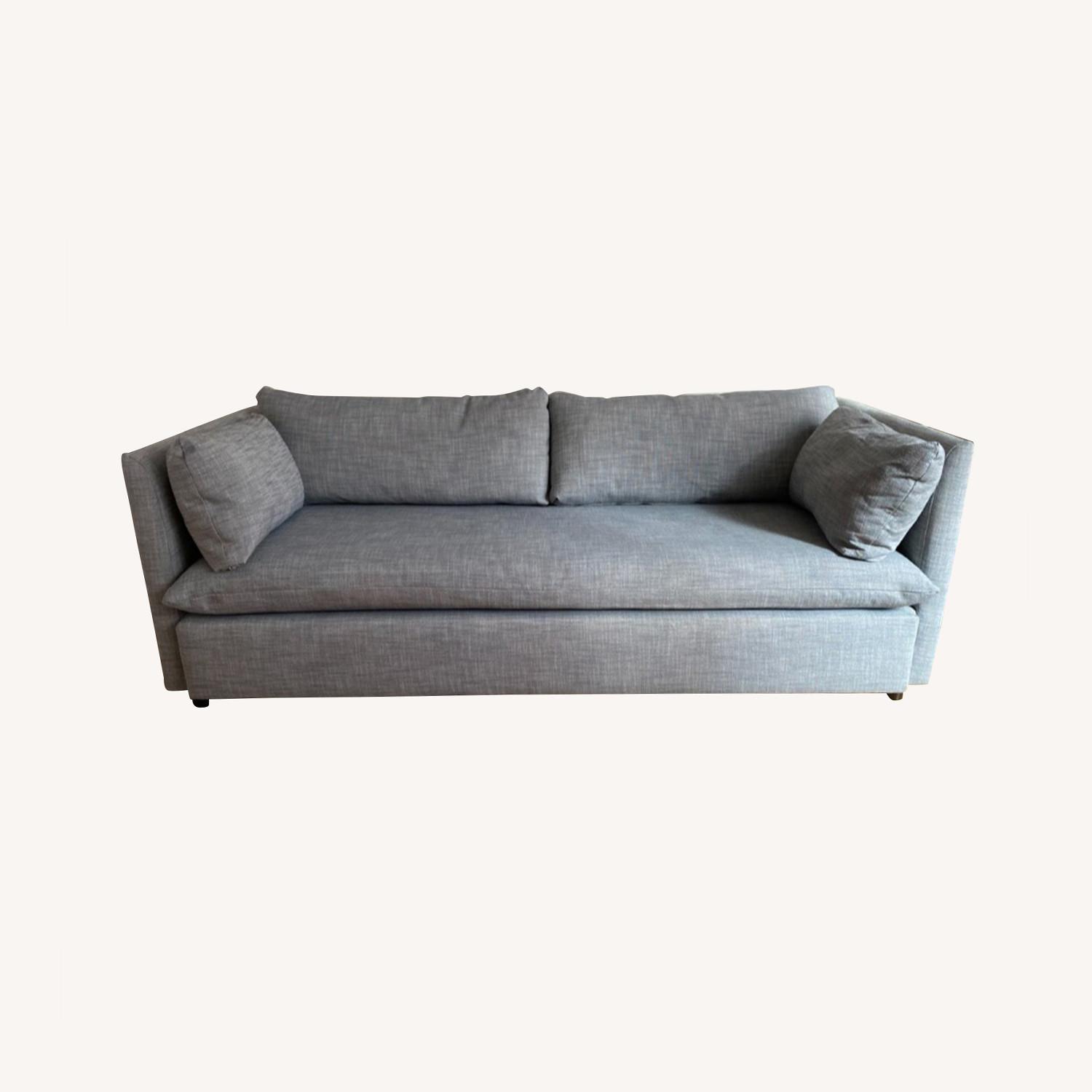 Seller's Notes:We bought this sofa bed a year and a half ago because we moved into a bigger apartment - but because of the pandemic we only had one guest visit for one weekend, so it has barely been used! It has no visible wear or tear whatsoever, and we never even sit on it as it is in the spare room. Our home is smoke free and pet free. The fabric is Yarn Dyed Linen Weave in Shelter Blue, the color looks like light grey with a blue undertone. It goes well with everything and looks surprisingly stylish for a sleeper sofa. Our guest's feedback was that the mattress is very comfortable. The pull out mechanism is very easy to use and put back, and the pillows rearrange nicely around the bed so you don't have to store them somewhere while you have visitors. We are only selling it because we are moving to a new place where it won't fit.
