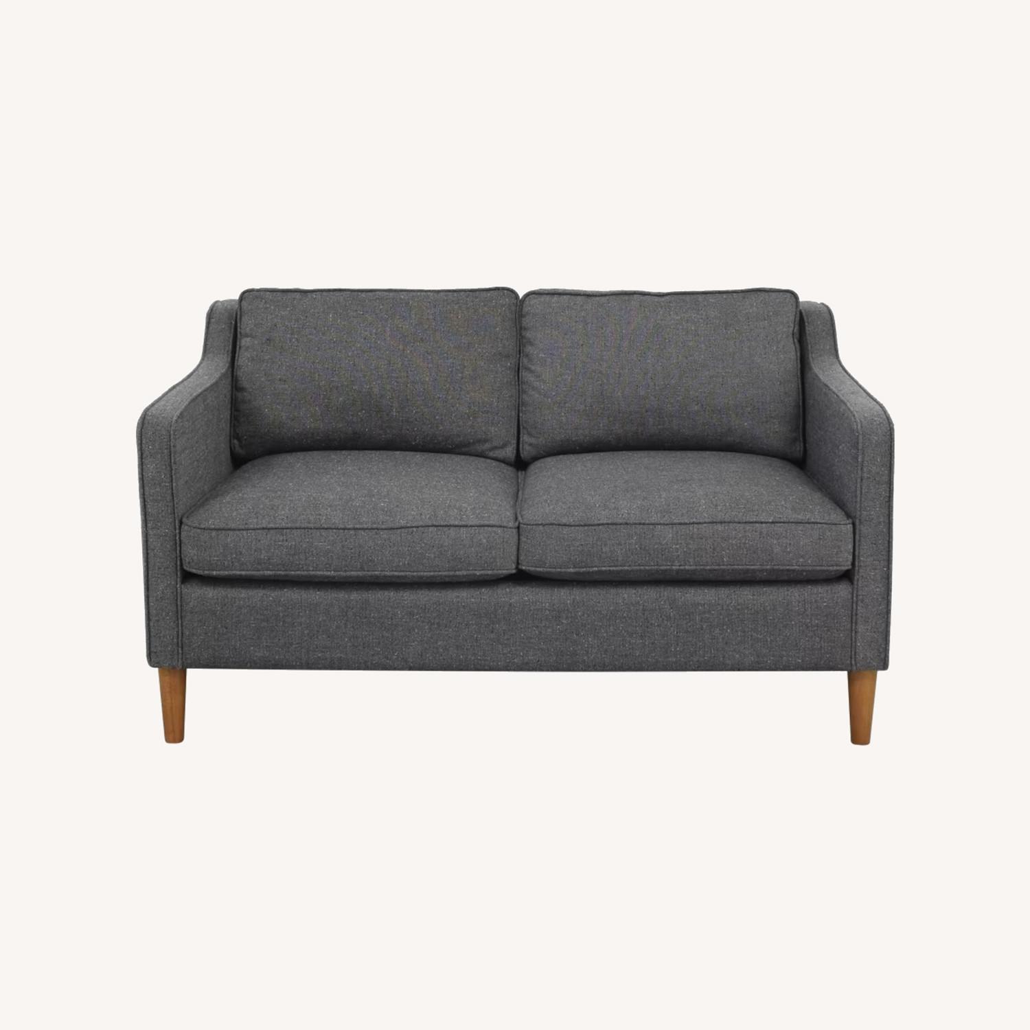 Seller's Notes:The fabric is a "Salt and Pepper Tweed" This loveseat is absolutely lovely! I rarely sat on it because I'm mostly at my desk when I'm at home. I've had it for a while but the condition is honestly like new. It's perfect for studio apartments. Pet and smoke free home; have never spilled anything on it. The back and seat cushions have removable covers that you can wash. Moving in with my partner and they have a bigger couch, and there's no room for this one. I hope it finds a new home!!