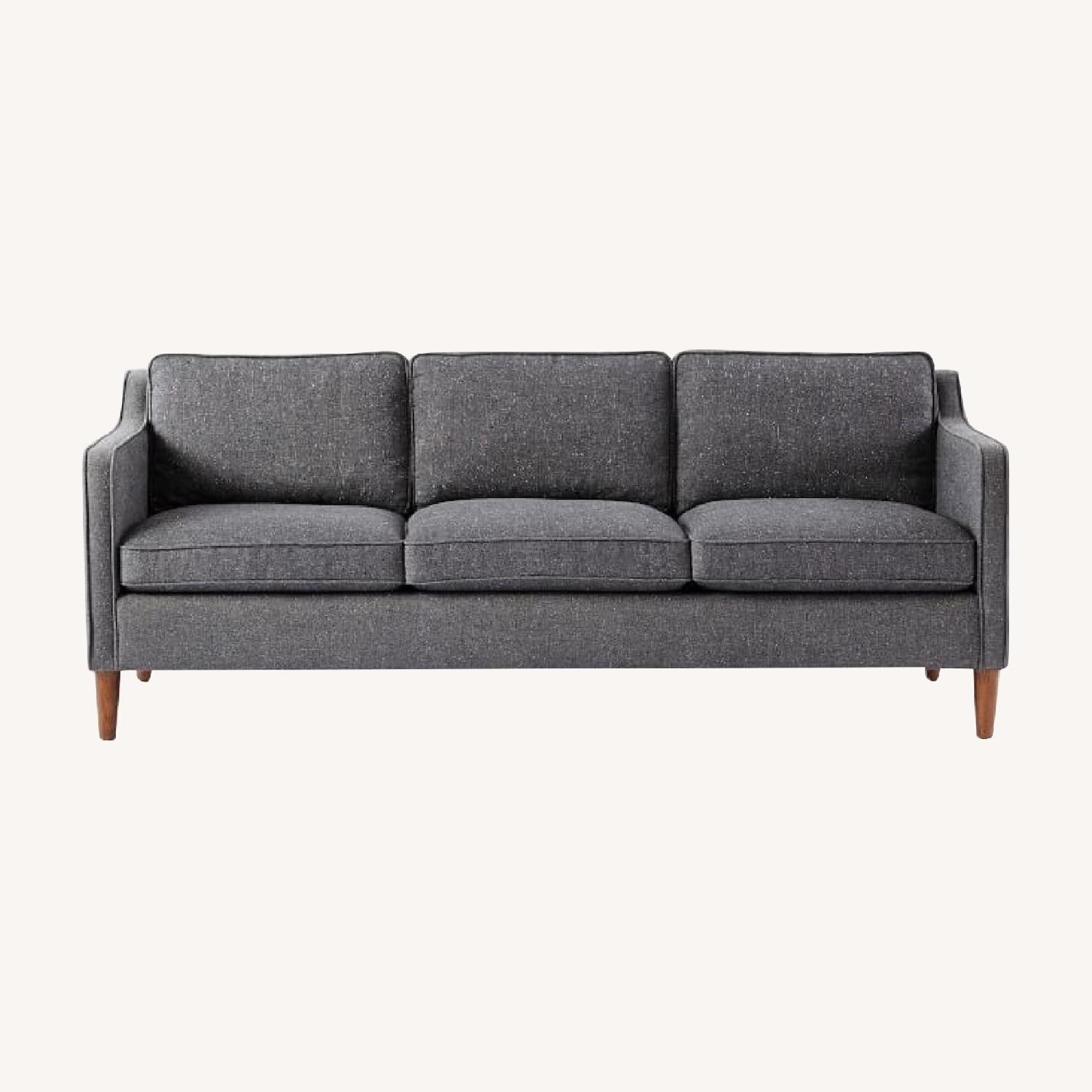 Seller's Notes:Love this couch... However we are moving into a better, yet smaller, apartment. So he have to down size everything. SEE OTHER LISTING! 411 Below Inspired by 1950s furniture silhouettes, our Hamilton Sofa is an instant classic. It's perched on solid poplar wood legs and covered in your choice of fabric, from textured tweed to super soft velvet. KEY DETAILS 81"w x 35.8"d x 31.5"h. This contract-grade item is manufactured to meet the demands of commercial use in addition to residential. See more. Solid oak and engineered hardwood frame with reinforced joinery. High-gauge sinuous springs provide cushion support. Seat cushions have fiber-wrapped, high-resiliency polyurethane foam cores. Back cushions are foam and fiber filled. Loose cushions with zip-off covers. Back cushions are reversible; seat cushions are not. Solid wood legs in an Almond finish.