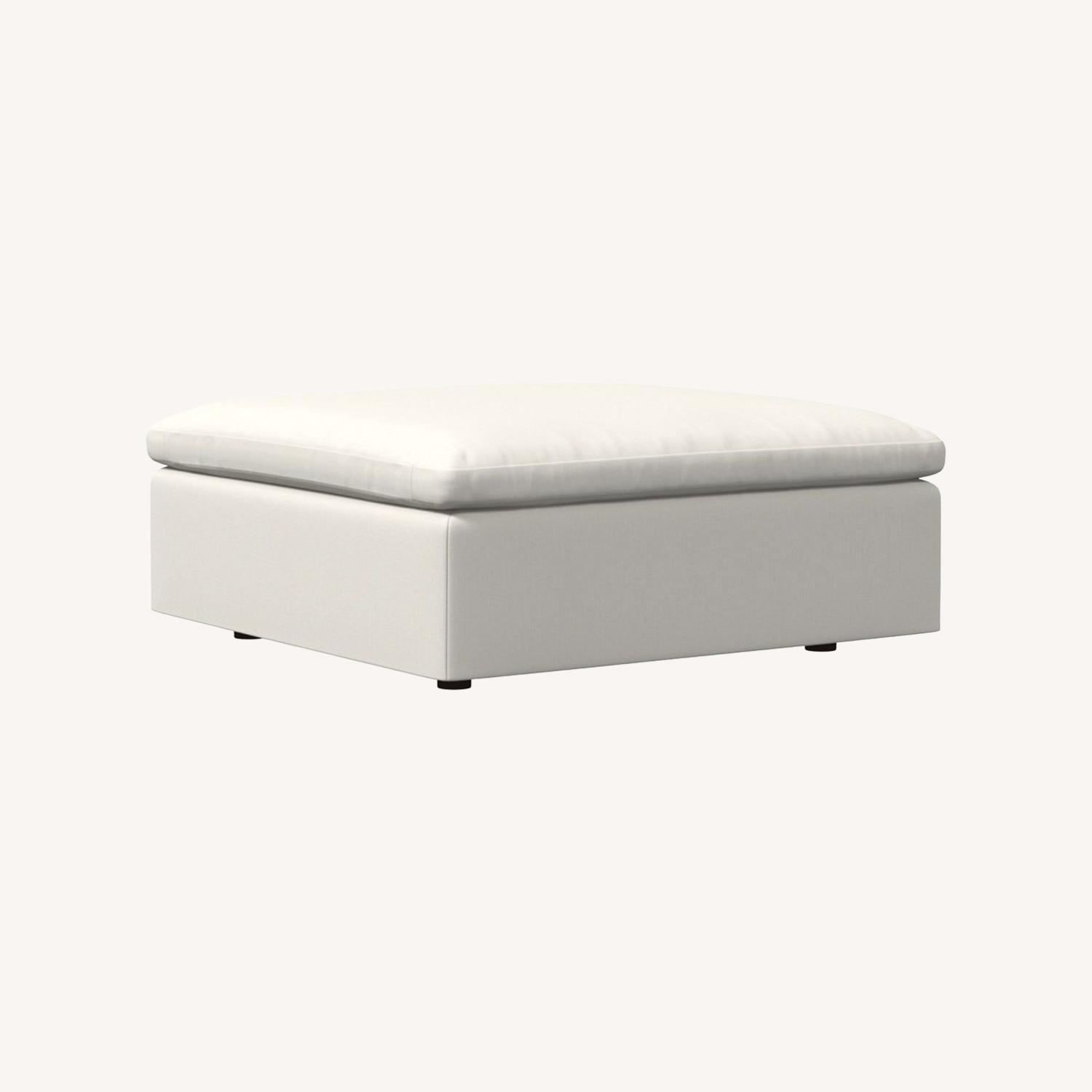Seller's Notes:Alabaster, Performance Basketweave fabric ottoman (39.5"sq. x 20"h). So cozy and perfect to throw your feet up. Performance fabric makes it easy to clean. It’s in really good used condition, no stains or visible marks. It’s just too big for our space right now.
