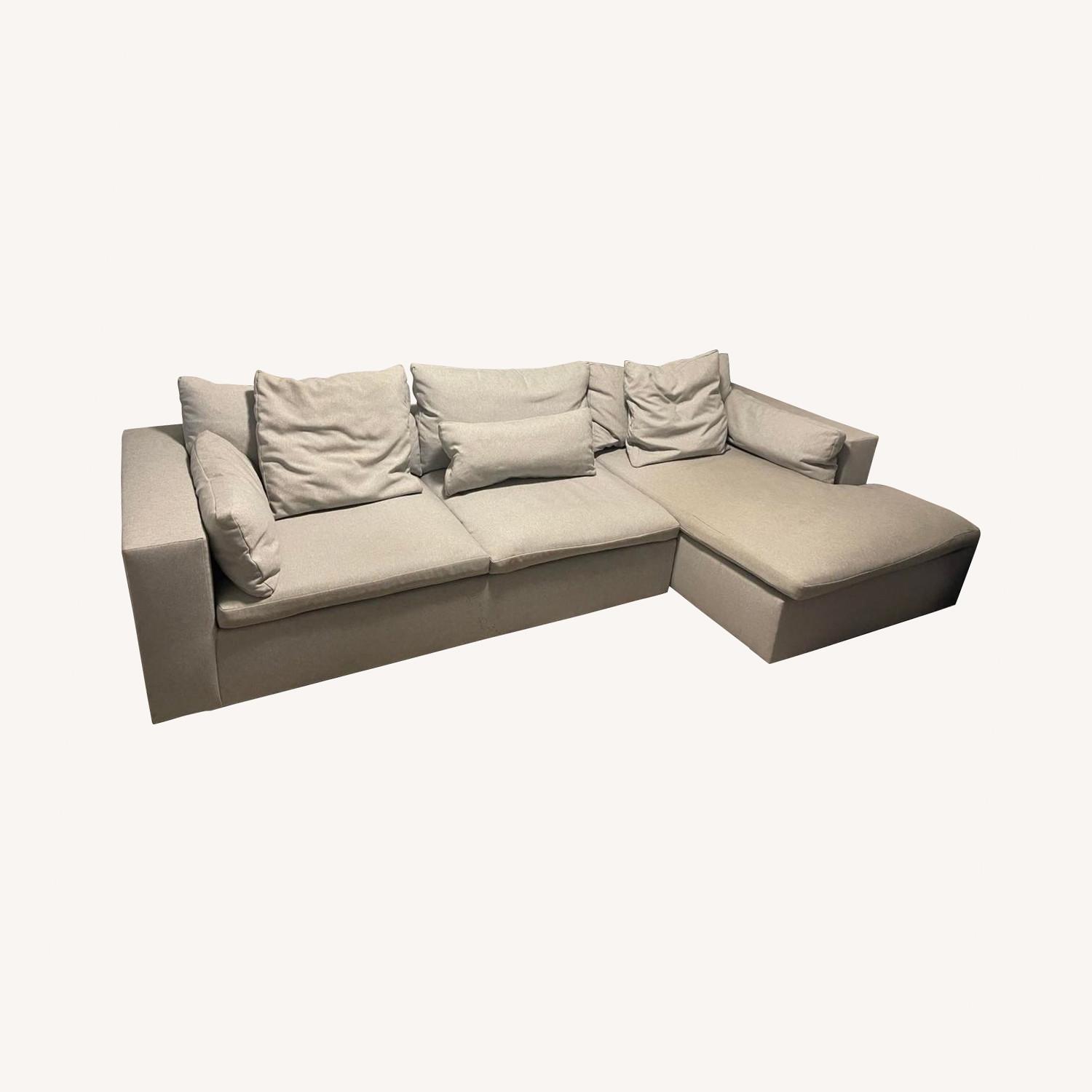 Seller's Notes:West Elm Harmony modular sectional sofa. 2 pieces - left arm sofa and right arm chaise. Color and material - Eco weave, Dove