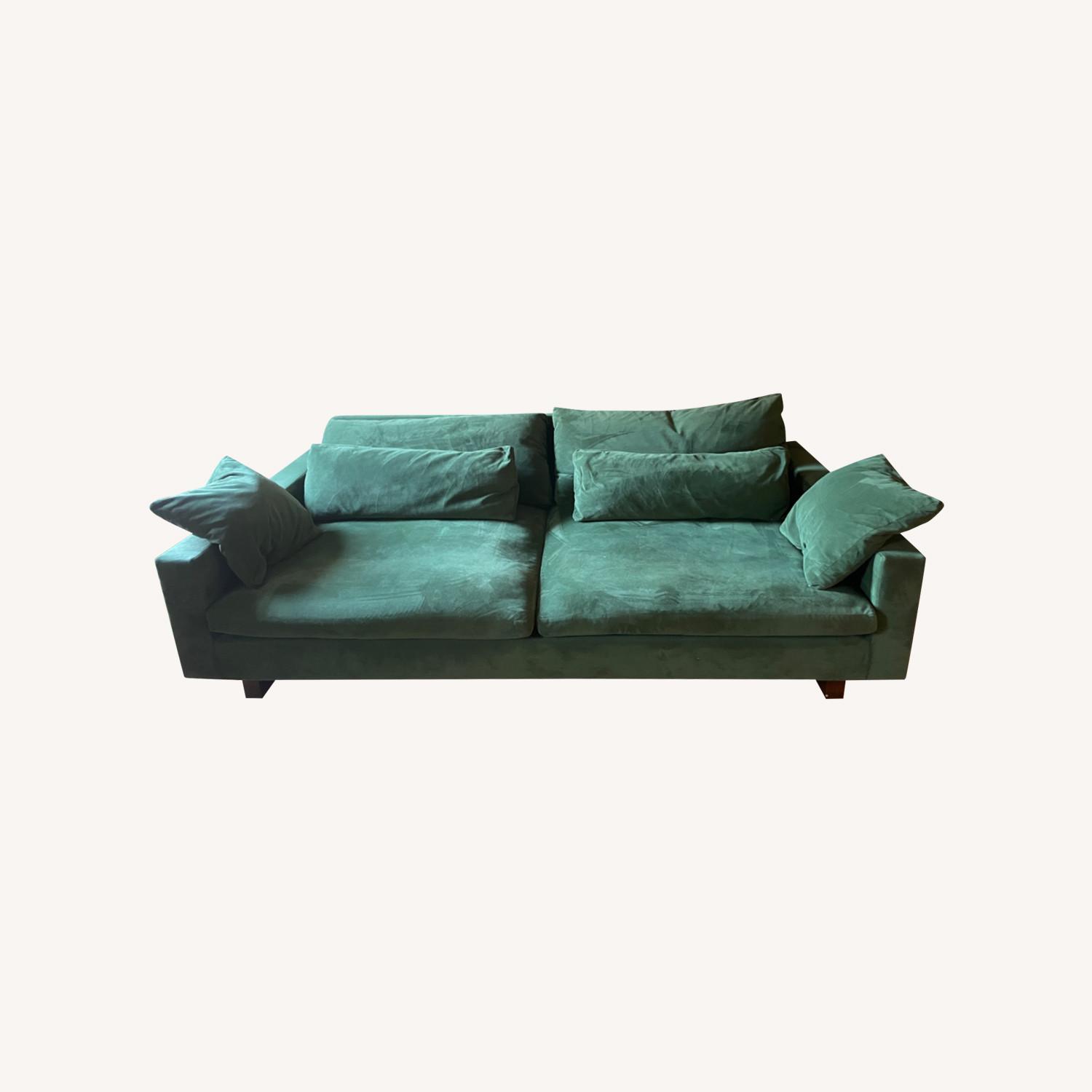 Seller's Notes:Lovely west elm performance velvet couch, originally $2500 Color is moss 1 year old Getting rid of because it is too big in my living room Dimensions in photos So deep it can sleep two Selling because I am moving Thank you!
