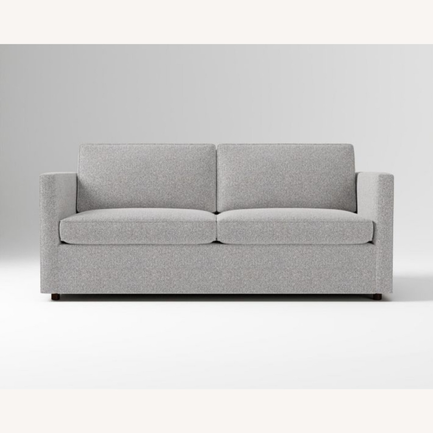 Seller's Notes:Beautiful West Elm Harris Queen size sleeper sofa. This has been in our office and used as a sleeper about 5 times total. Like new condition with barely any use and no wear and tear or stains. Color is Storm Gray Performance Chenille Tweed. Cozy sofa by day, handy sleeper by night. The pull-out mattress has a memory foam top. Hand-built frames with hand-finished upholstery. Contract Grade, so you know it's built to last.