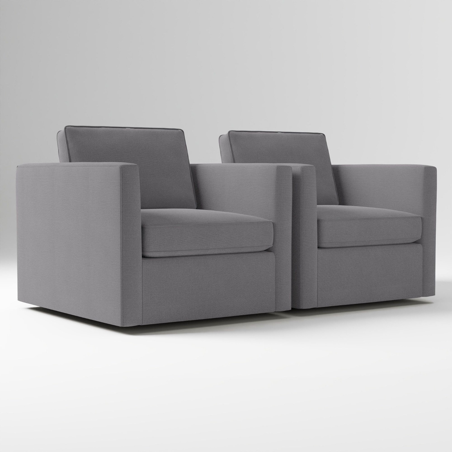 Clean lines & tailored details make these swivel arm chairs timeless.