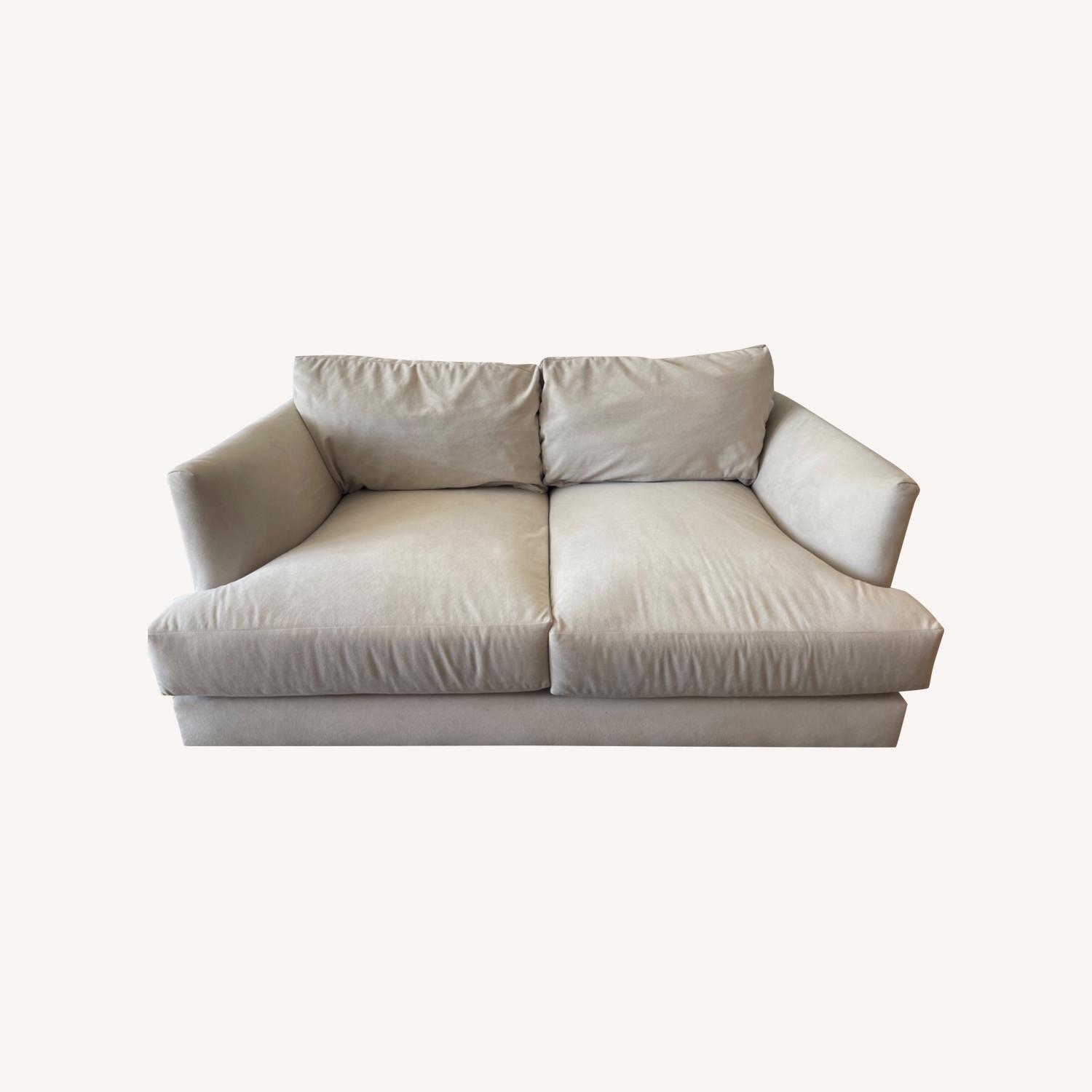 Seller's Notes:I bought this couch two years ago when I first moved into my current apartment. It’s a West Elm Haven Sofa. The true color and material is Alabaster, Astor Velvet. This couch is very soft and comfortable. If you remove the back pillows, there’s a bit of room to actually lay down if you wanted to lounge more and take a nap.