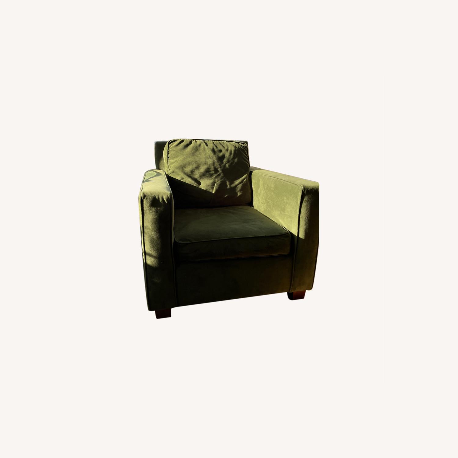 Seller's Notes:Henry Armchair from West Elm in Moss Green Performance Velvet. Great shape and super comfy for cozying up with a book or for a chat. Constantly get compliments on the color. Clean lined club chair is great with any decor and looks awesome with lighter colored accent pillows and throws.