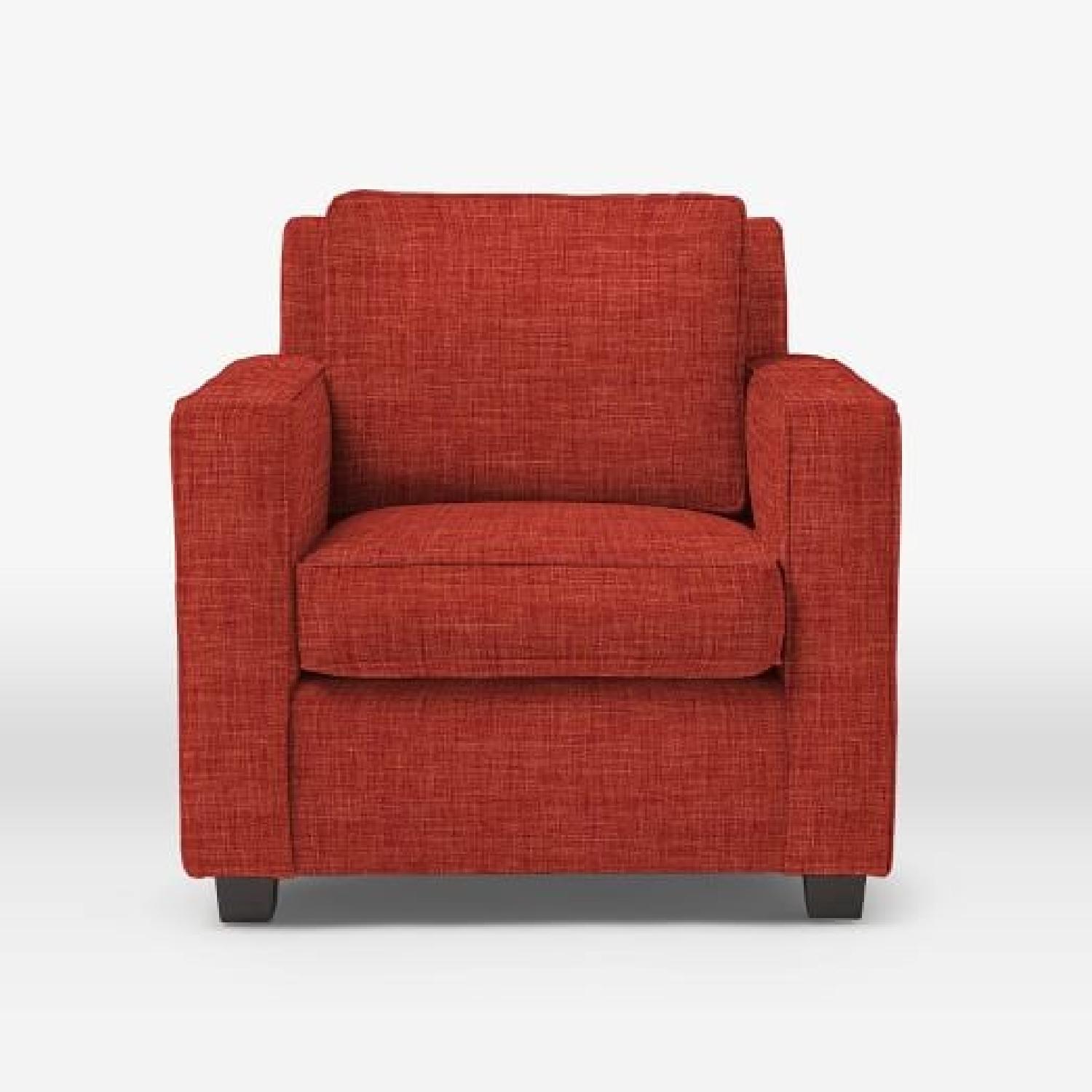Seller's Notes:This West Elm Henry Armchair is essentially brand new. The fabric color is "chili". It's a GREAT chair, it just doesn't work with my couch. It's only a few weeks old -- I can't return it because the color was a special order. Throw a pillow on there for a perfect reading chair!