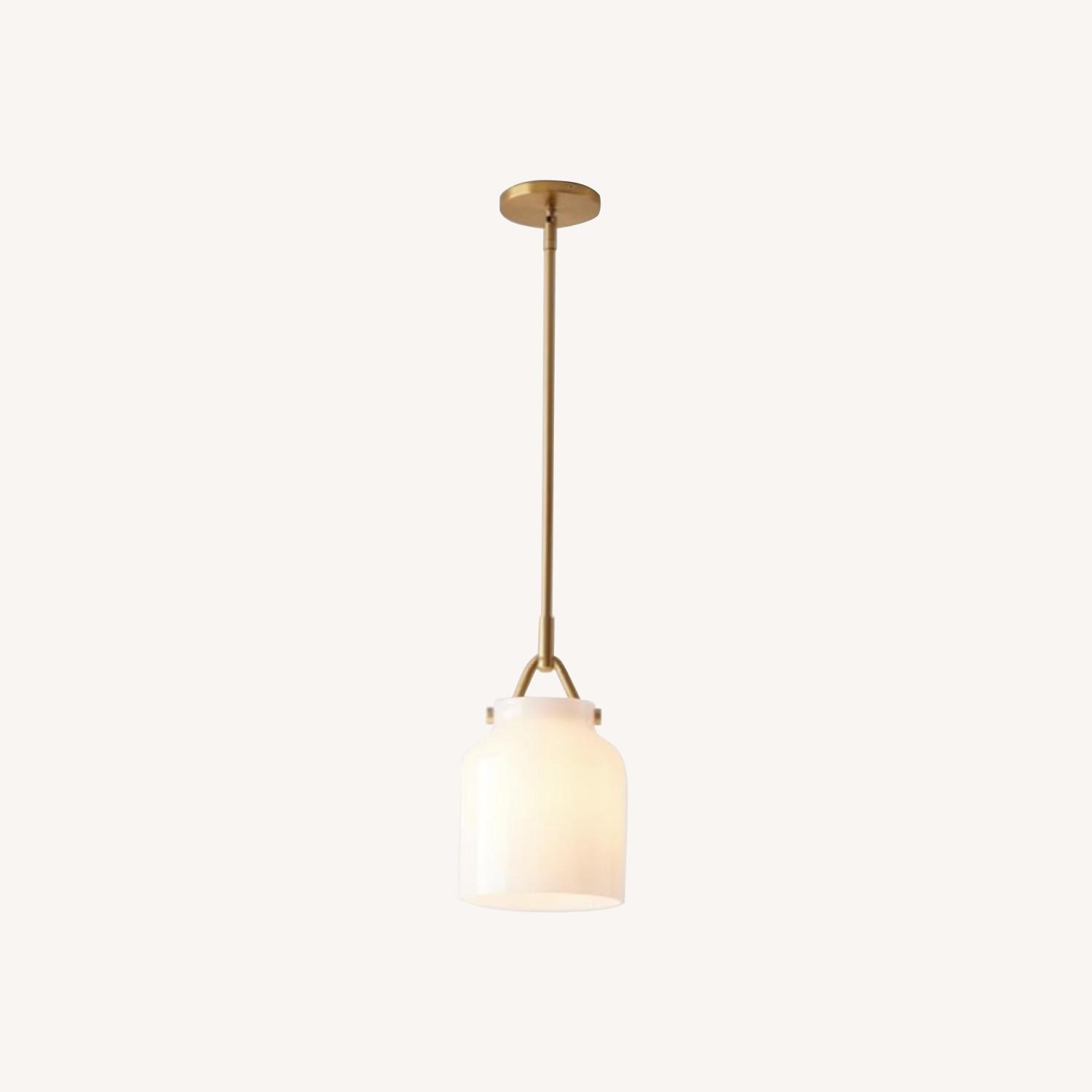 Seller's Notes:West Elm Henry Pendant 7.5", Milk Glass & Antique Brass Two Available Brand New Still in Boxes