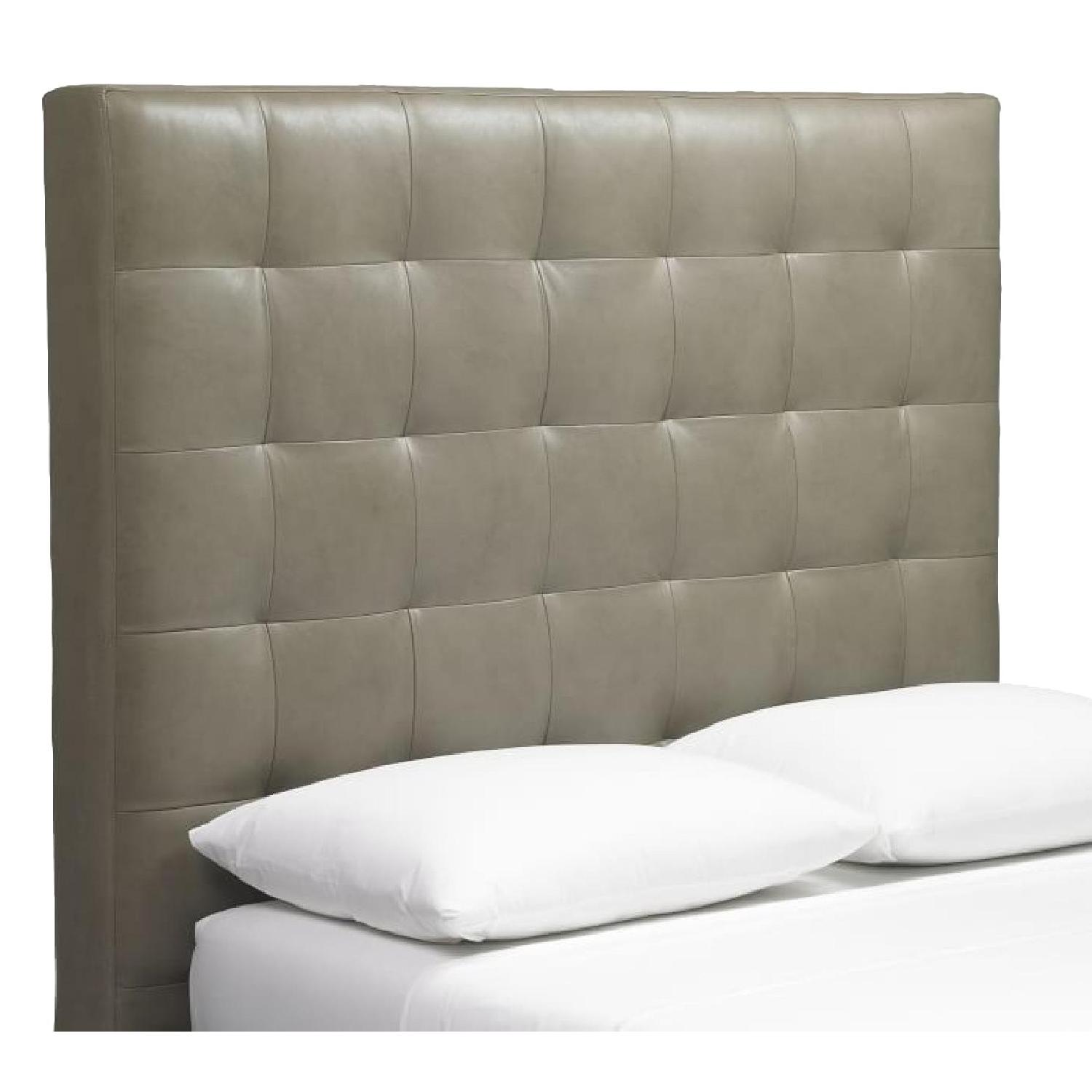 West Elm High Grid-Tufted Queen Headboard in Gray Leather