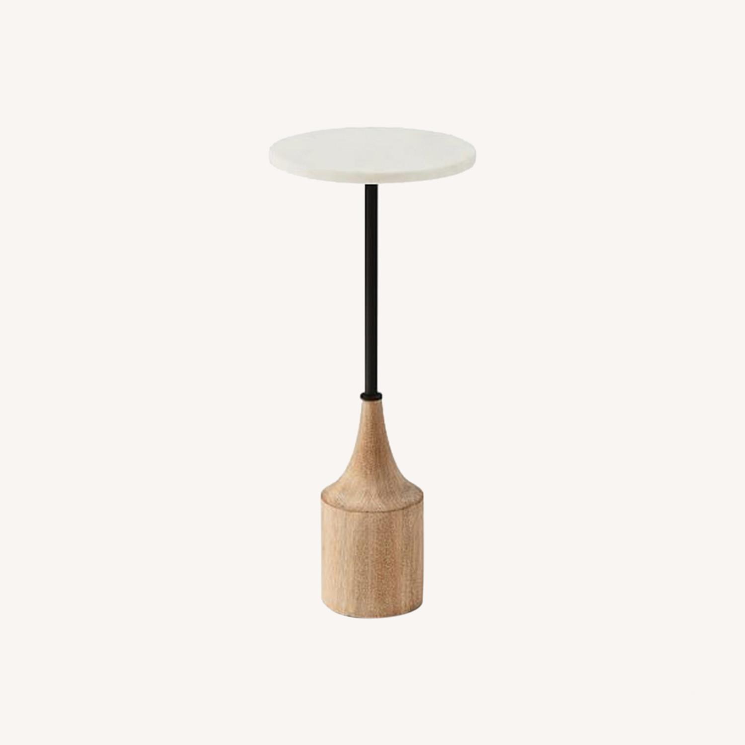 Seller's Notes:Marble drink table with cerused white base. In like new condition, no flaws. Pick up from 34th/6th.