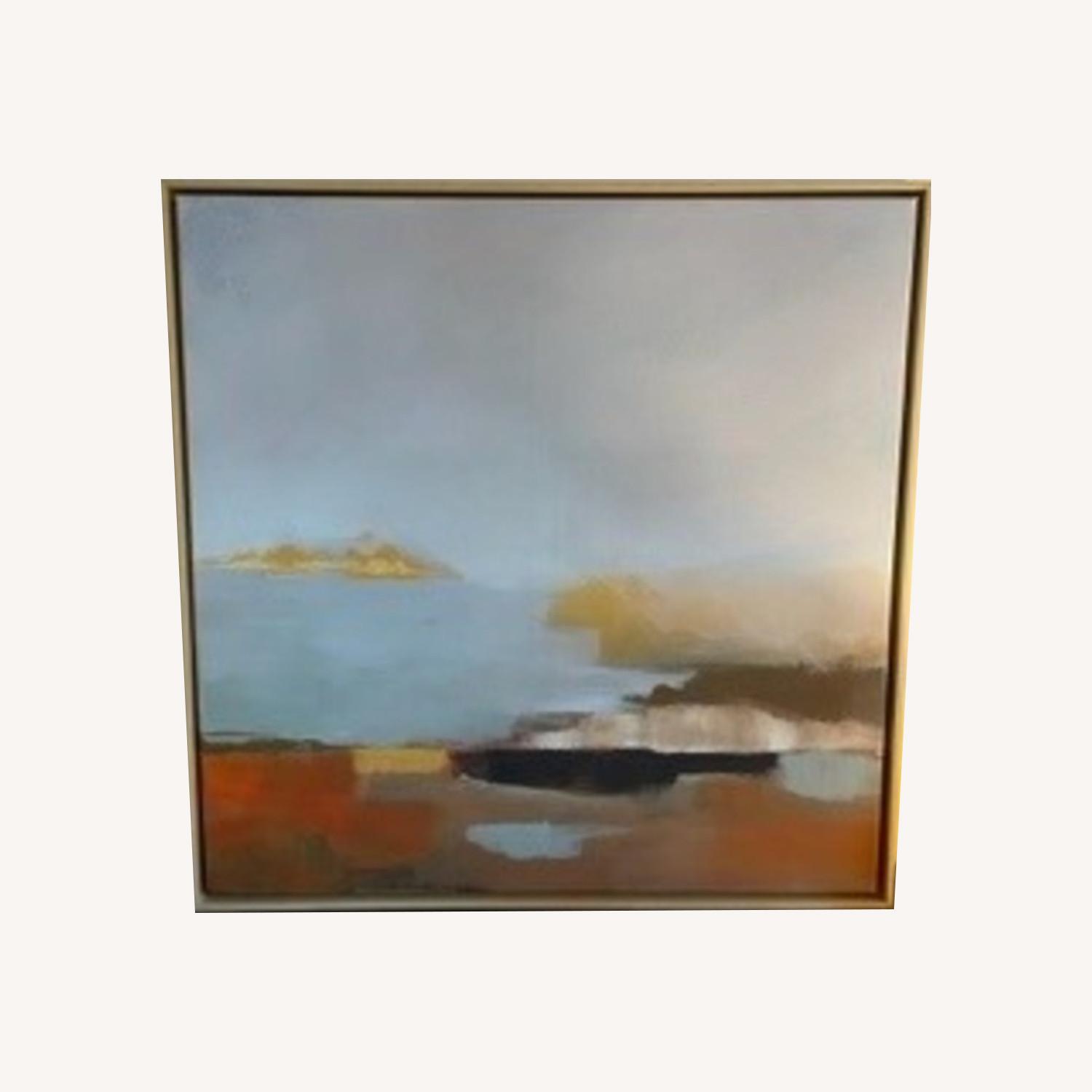 Seller's Notes:I bought this a week ago and realized it doesn't really fit the space. It is brand new. Created in collaboration with Minted.com. 30"sq. x 2.3"d. 8 lbs. Canvas. Wooden frame in a Natural finish. Hanging hardware included. Can be hung vertically or horizontally.