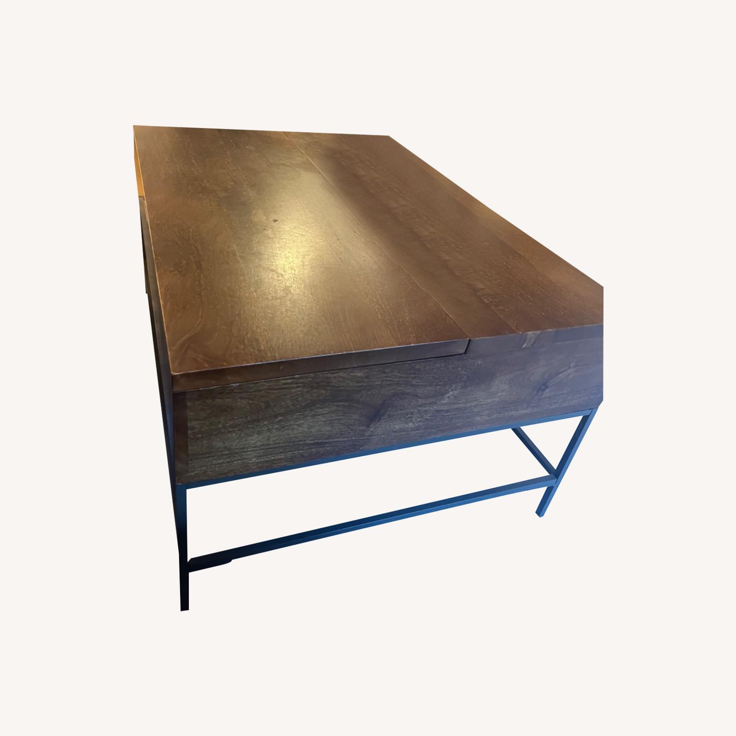Seller's Notes:West Elm coffee table perfect for apartment living. Some blemishes as photographed but still in wonderful condition. Cafe color, 36x26 Link to listing: https://www.westelm.com/products/industrial-storage-pop-up-coffee-table/