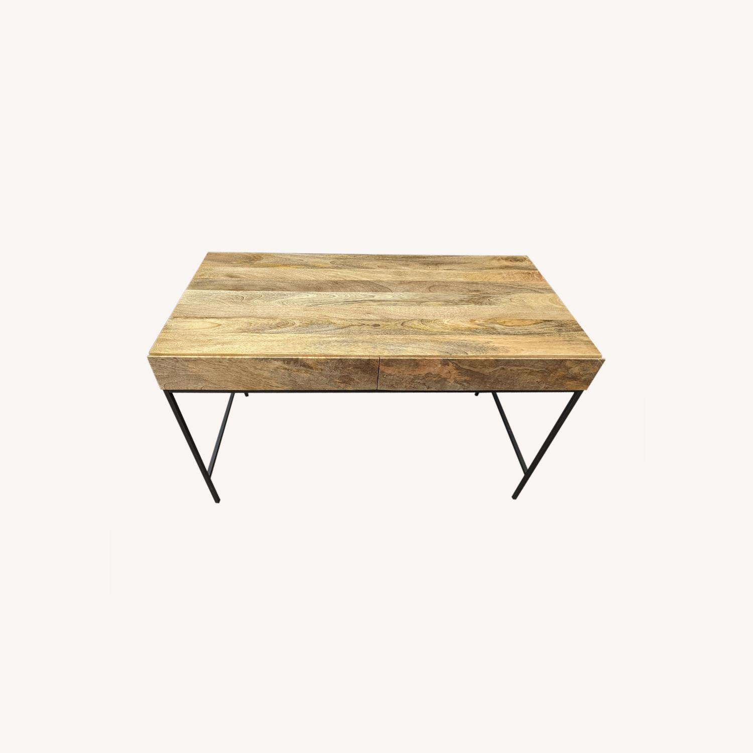 Seller's Notes:-Solid mango wood; blackened steel frames. -Natural variations in the wood grain and coloring are to be expected. -2 deep drawers. -The mango wood used on this product is sustainably sourced from trees that no longer produce fruit. -GREENGUARD Gold Certified. This low-emitting product has been screened for over 10,000 chemicals and VOCs. -This contract-grade item is manufactured to meet the demands of commercial use in addition to residential. -Made in a Fair Trade Certified™ factory, empowering workers who made it.