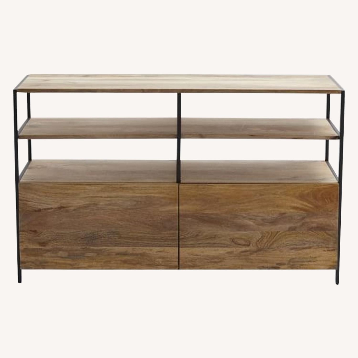 Seller's Notes:Made from richly-grained solid mango wood and supported by blackened steel frames, our Industrial Modular Storage Collection combines form, function and versatility. It offers plenty of media storage and shelving space, while its freestanding design means that you can easily pair it with other pieces in the collection to create a set that's right for you. The natural variations in mango wood make each piece subtly unique. 49"w x 17"d x 30"h. Solid mango wood with natural color variations. Blackened steel frames and legs. The mango wood used on this product is sustainably sourced from trees that no longer produce fruit. Made in India.