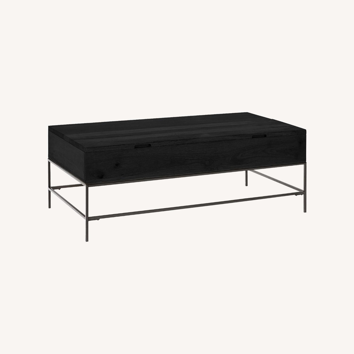 Seller's Notes:Blackened steel legs. Solid mango wood body. Natural variations in the wood grain and coloring are to be expected. Top door with pop-up mechanism reveals interior storage. Pop-up top doubles as a workspace or tabletop. The mango wood used on this product is sustainably sourced from trees that no longer produce fruit. Made in a Fair Trade Certified™ factory, empowering workers who made it. Made in India.