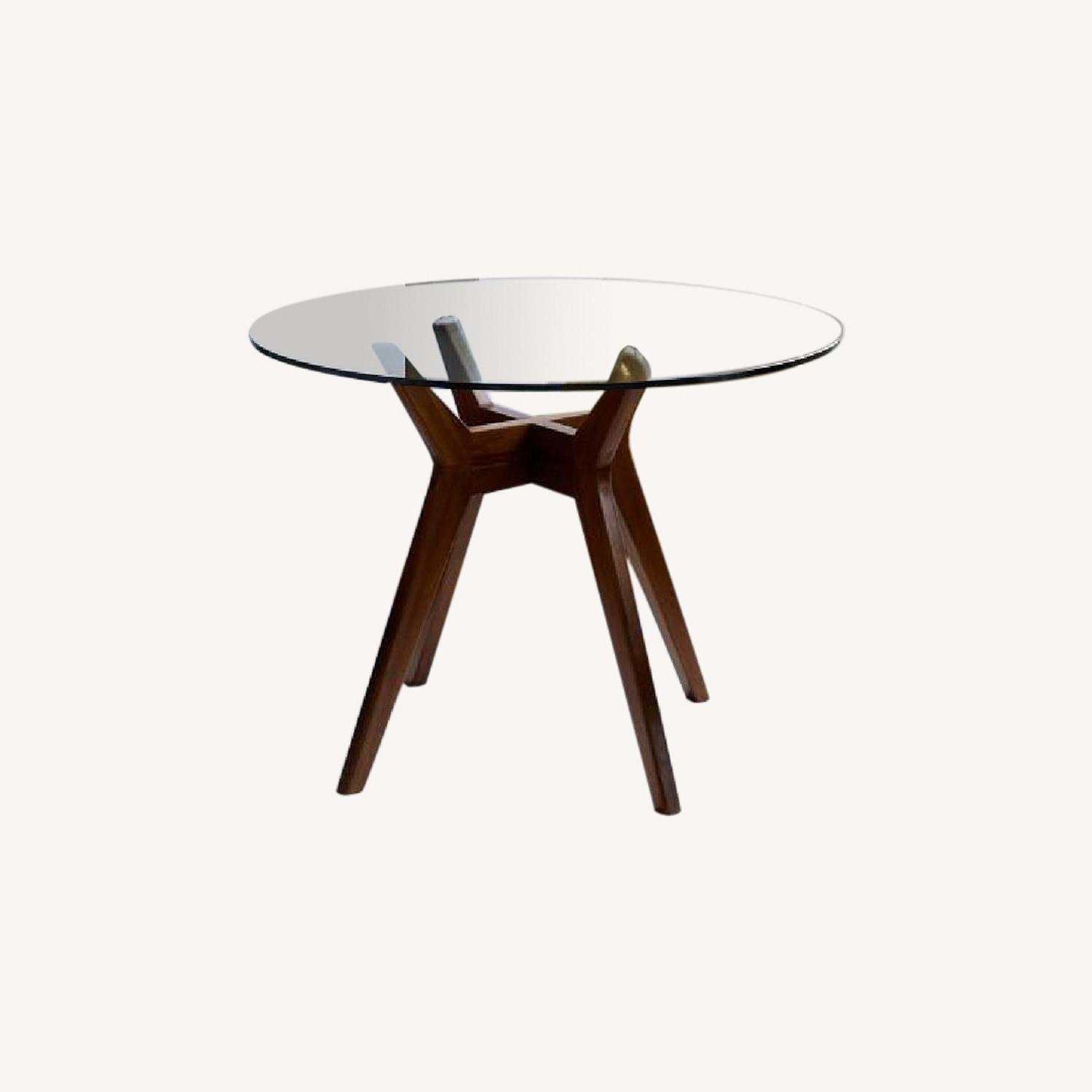 Seller's Notes:West Elm Jensen dining table. Beautiful wood stand and glass top, used but in great condition. Purchased for $549 plus tax and shipping. Selling alone or with dining chairs in a moving sale. High quality items a discounted rate, see profile for other listings.