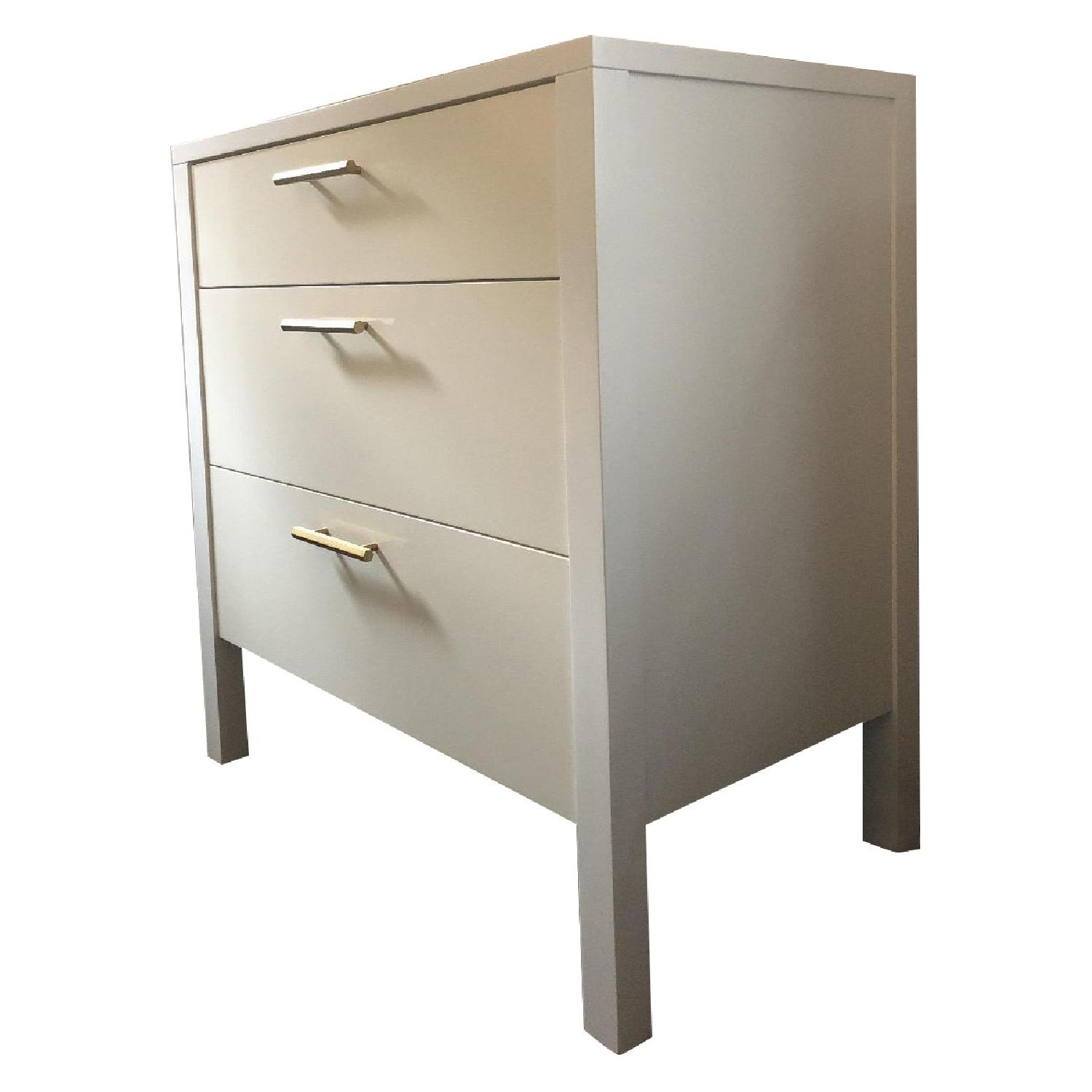 Seller's Notes:This White Lacquer 3-Drawer Dresser has CB2 Hex Brushed Brass 3” Handles, which have a few marks on them (Image 3). The Dresser has discoloration on the Drawers due to the sun exposure where it was sitting (Image 2). Otherwise, this Dresser is in mint condition. I am selling this piece because I am moving and will be unable to take it with me.