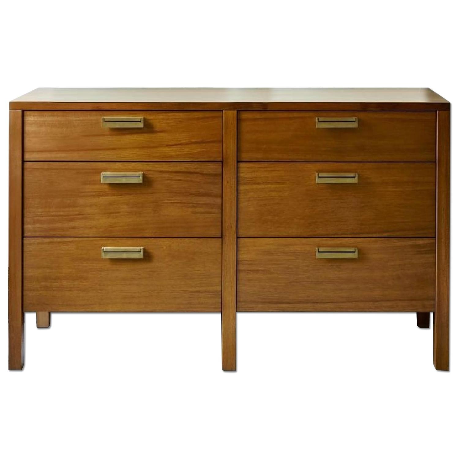 Seller's Notes:Inspired by the clean lines and precise angles of iconic mid-century pieces, our Jones 6-Drawer Dresser is a seamless fit with any style of bedroom. Metal drawer pulls that swing out for an easy grip complement the crisp design. 56"w x 19"d x 34"h. Made from sustainably sourced wood certified to FSC® standards. Solid eucalyptus wood with Acorn-stained veneer in a water-based finish. Metal hardware in an Oil-Rubbed Bronze finish. Drawers open on smooth wood glides. Made in Vietnam.